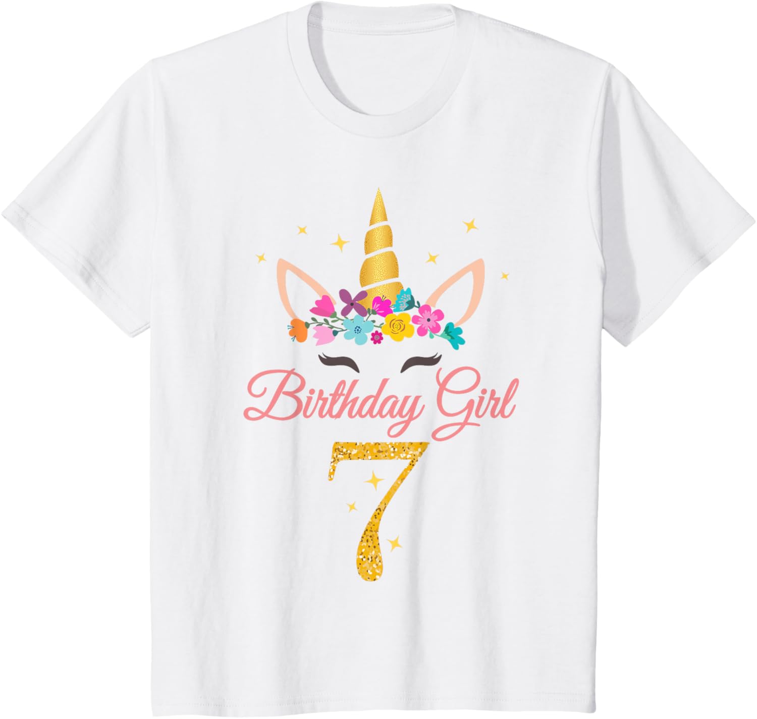 Kids 7 Birthday Girl Unicorn Design 7-Year-Old 7th BDay T-Shirt