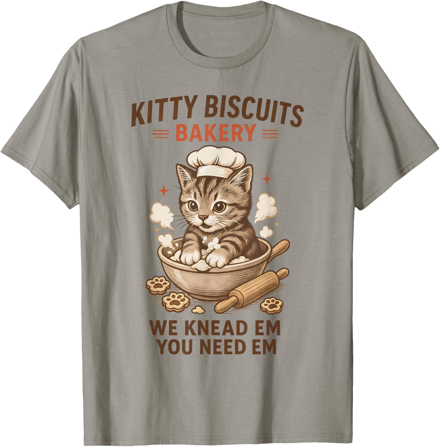 Kitty Biscuit Maker Cute Cat Kneading Dough Scene T-Shirt
