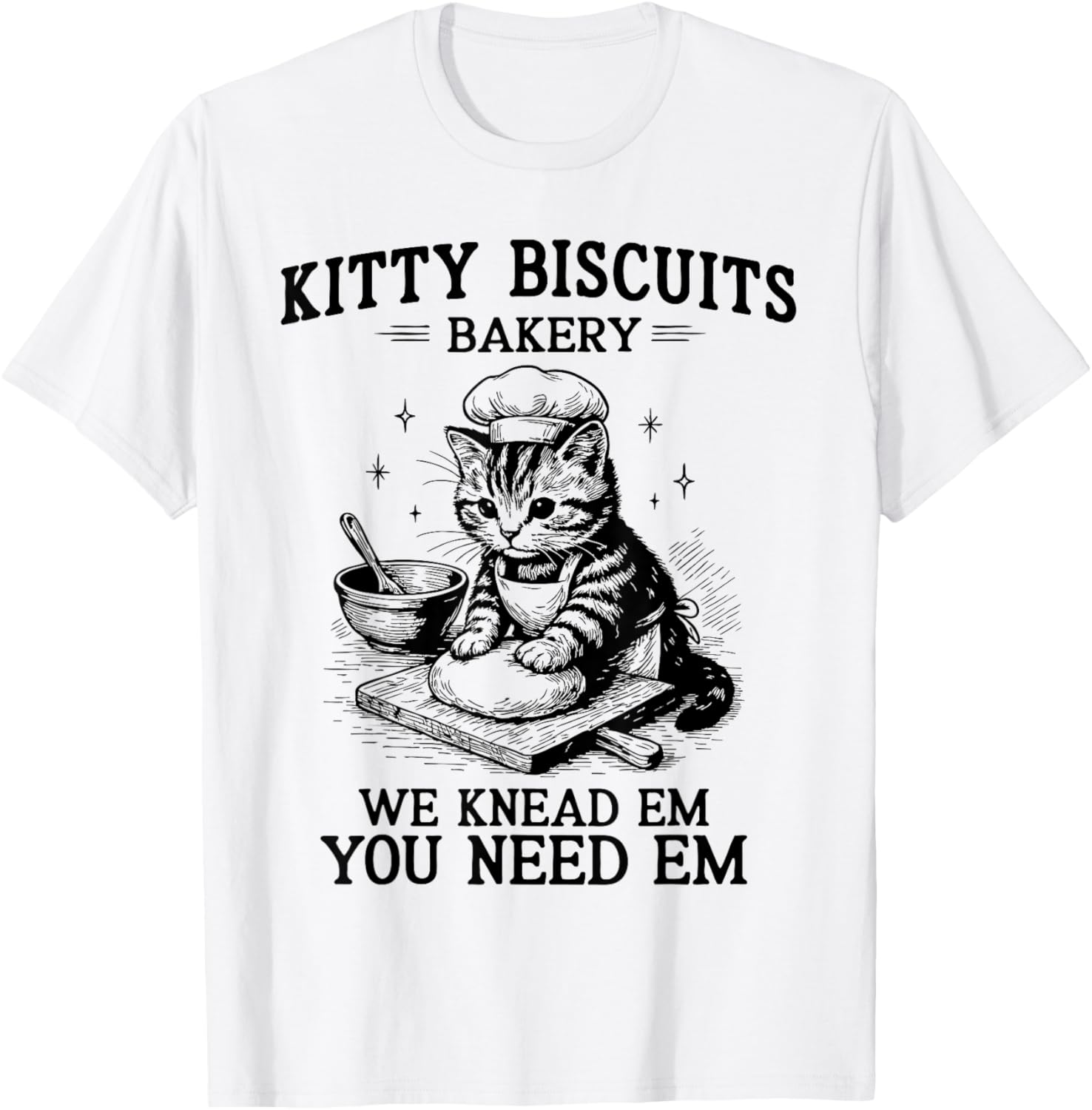 Kitty Biscuits Bakery We Knead Em You Need Em Pun Cat Baking T-Shirt