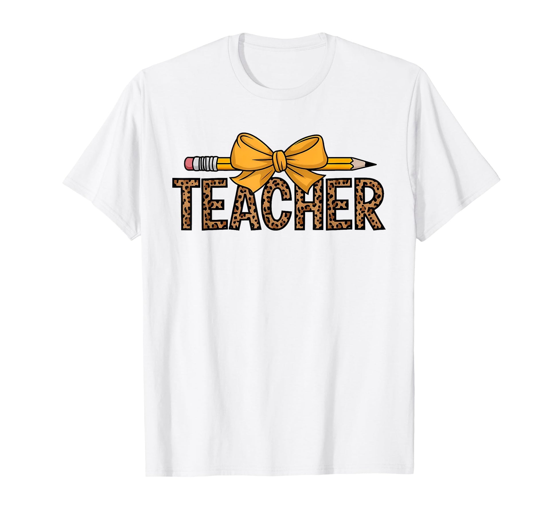 Leopard Teacher Coquette Pencil Bow Back to School Women T-Shirt