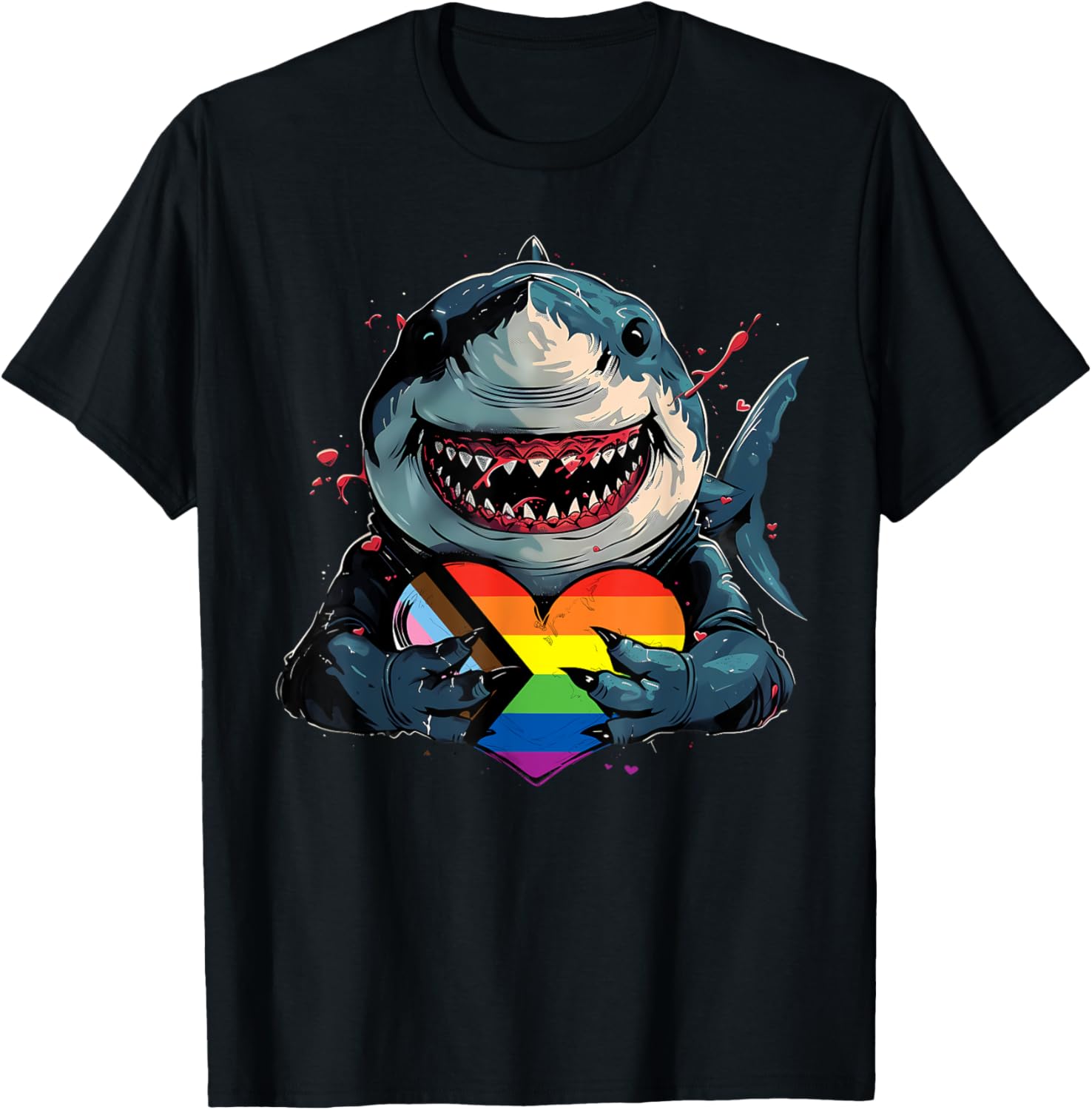 LGBTQ+ Shark Heart Progressive Pride Flag LGBT LGBTQ T-Shirt