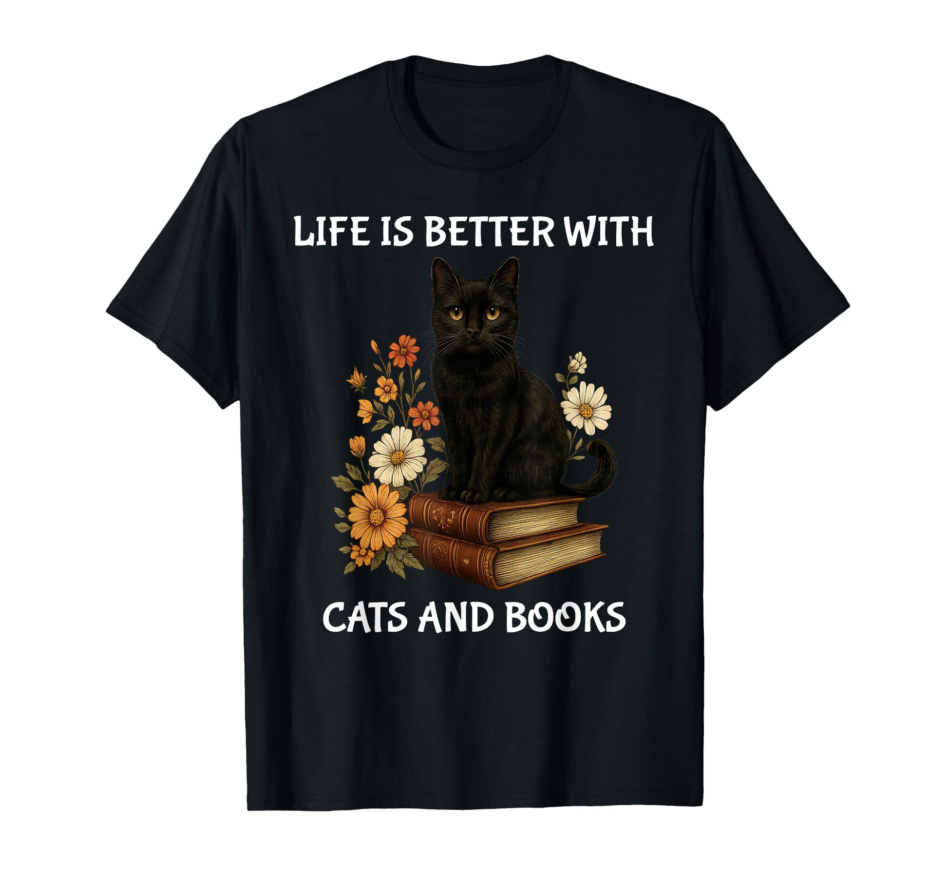 Life Is Better With Cats And Books Cute Cat Lover T-Shirt for Men Women Kids