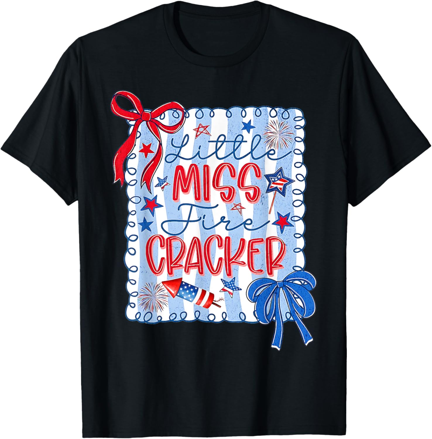 Little Miss Firecracker American Flag Usa Teen Toddler Girl T-shirt