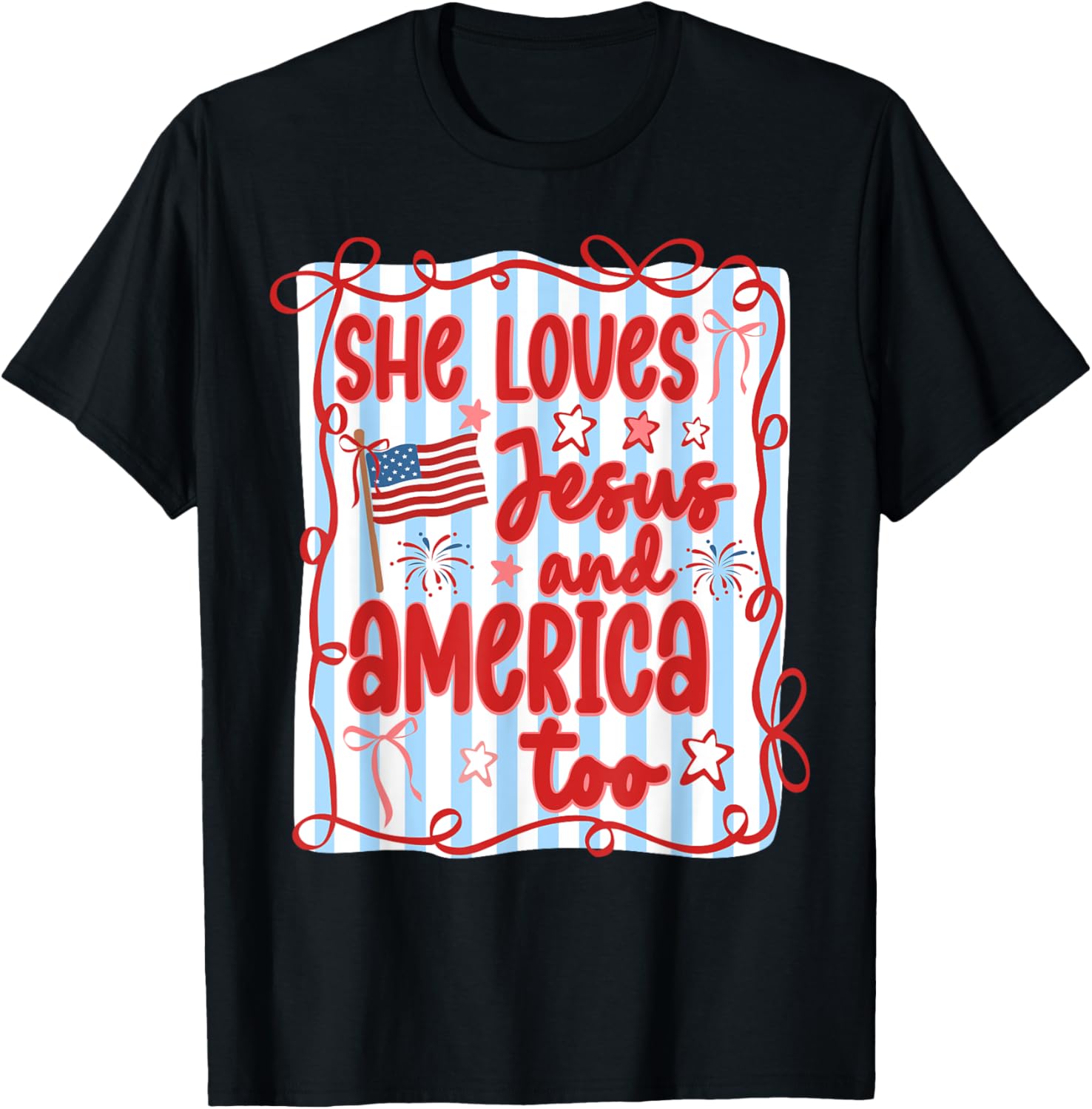 She Loves Jesus & America Too Patriotic American 4th Of July T-Shirt