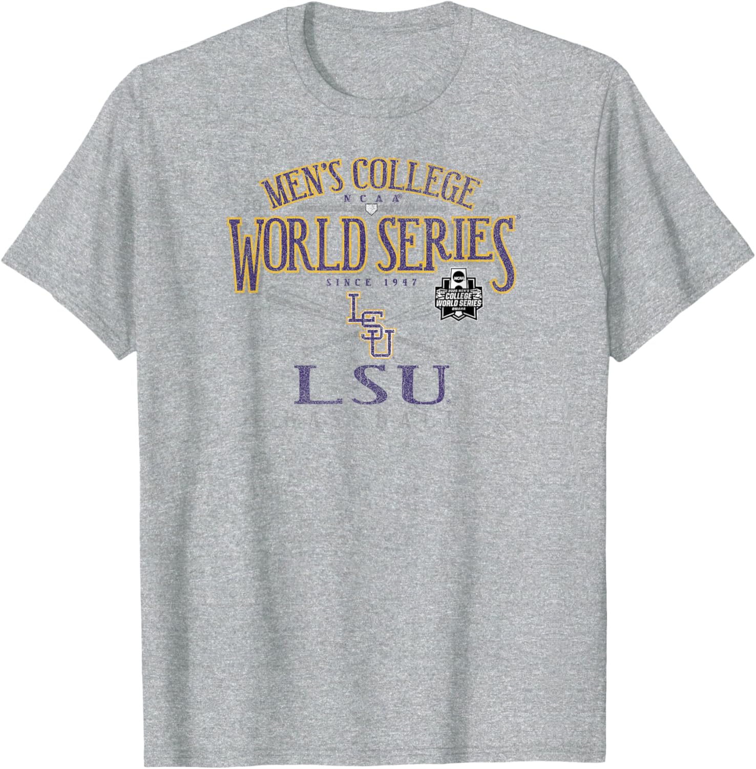 LSU Tigers MCWS 2025 Baseball Vintage Gray T-Shirt