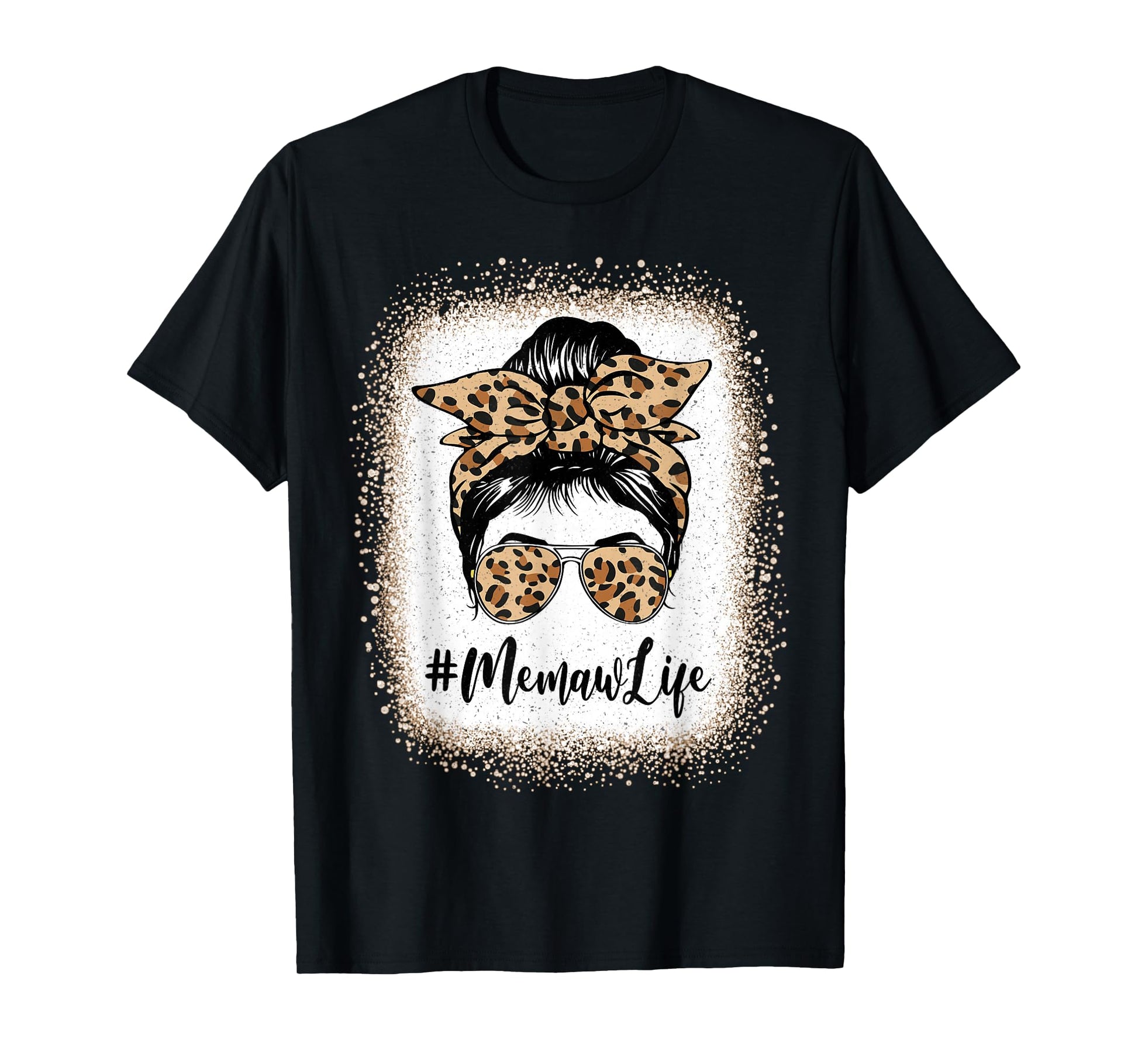 Memaw Life Bleached Leopard Messy Bun Mother's day T-Shirt