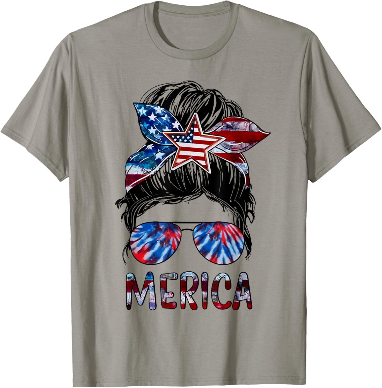 Messy Bun American Flag Tie Dye Womens T-Shirt