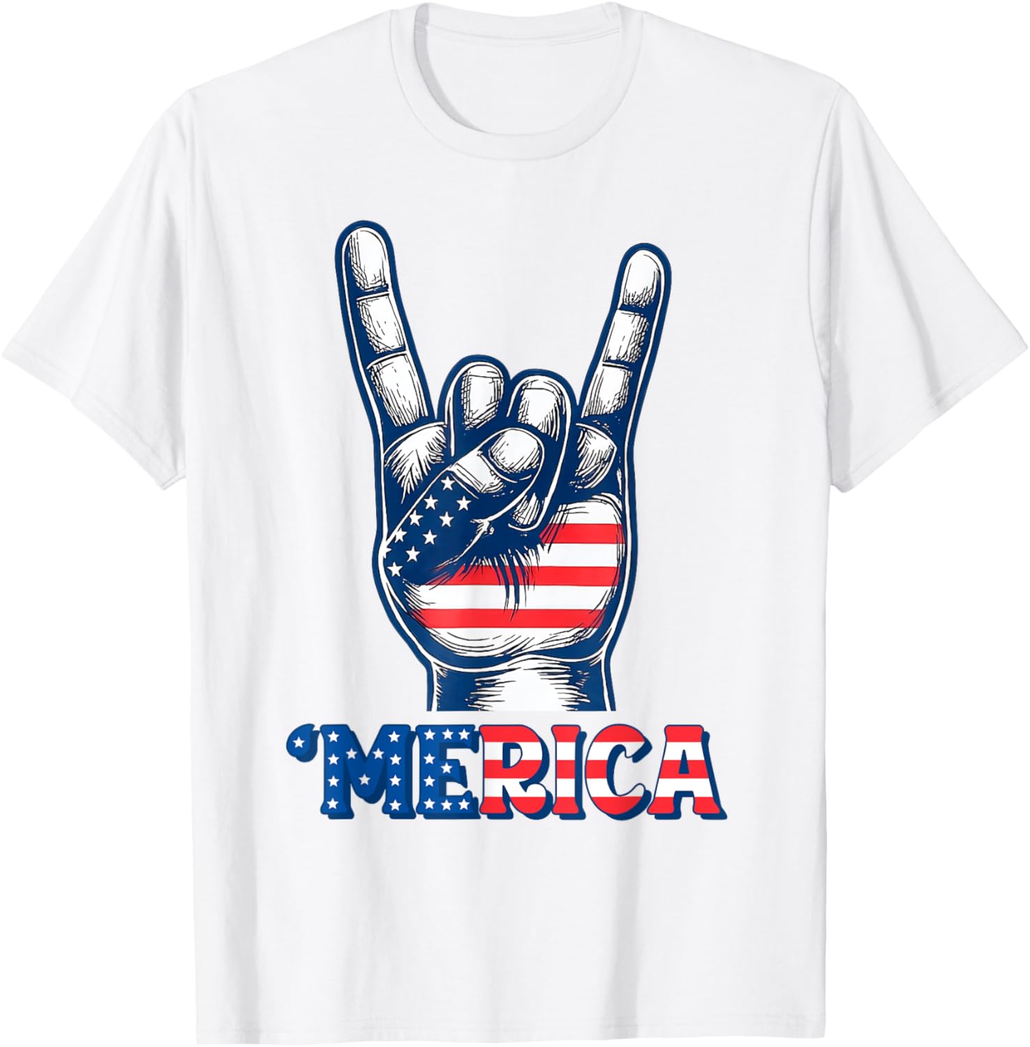 Merica Rock Sign 4th Of July Vintage Retro American Flag T-shirt