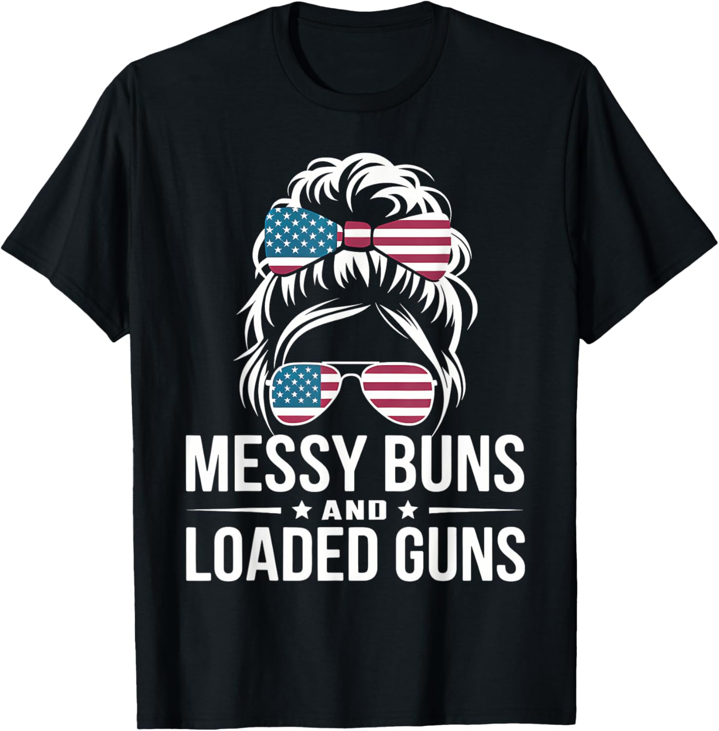 Messy Bun and Loaded Guns American Flag 4th of July Women T-Shirt