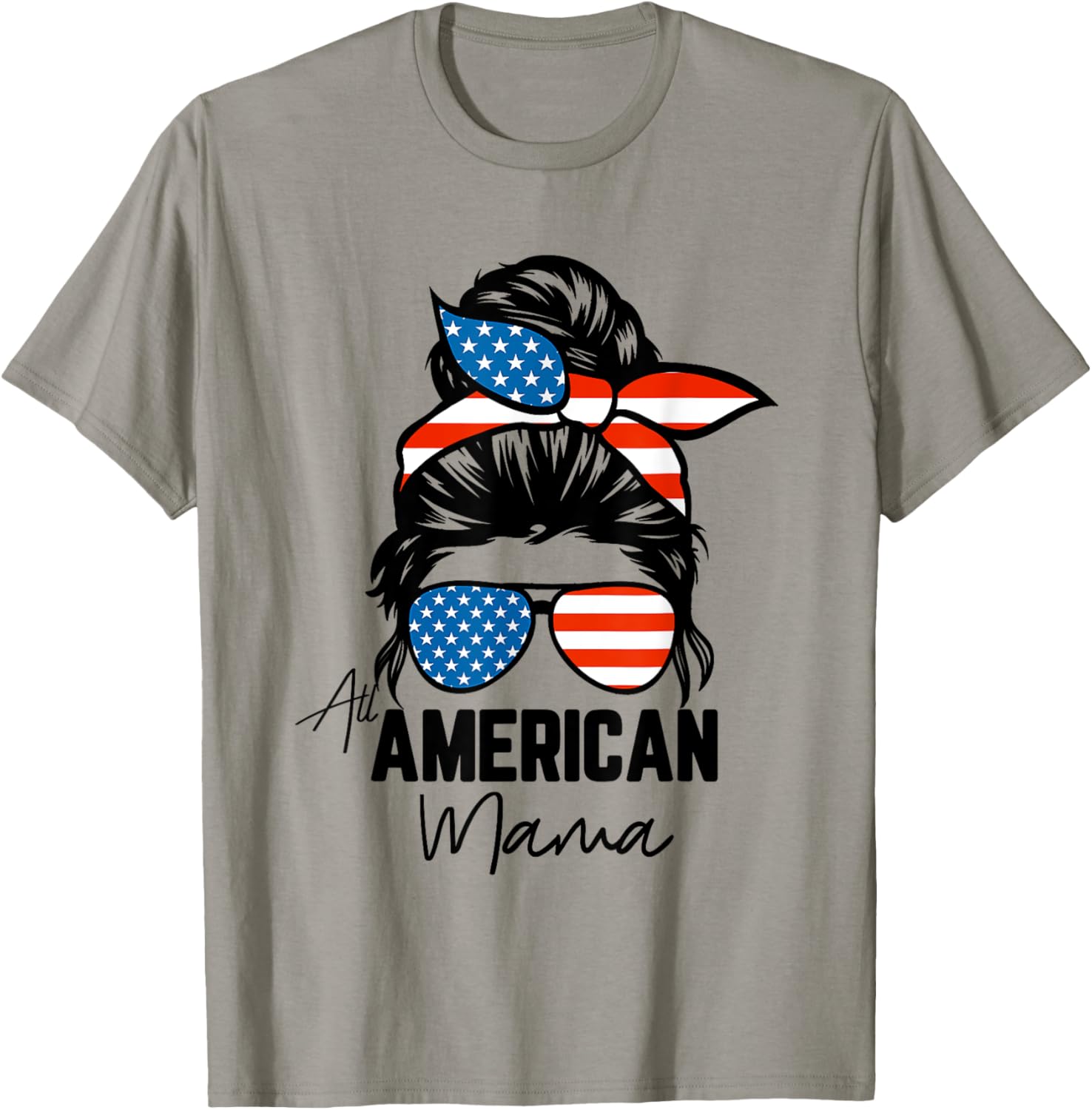 Messy Bun Patriotic shirt | All American Mama 4th Of July T-Shirt