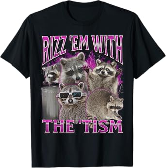 MildlyPerturbed Unisex-Adults Raccoon Meme Bootleg Vintage Graphic 90s Tee - Black, Small, Short Sleeve, T-Shirt