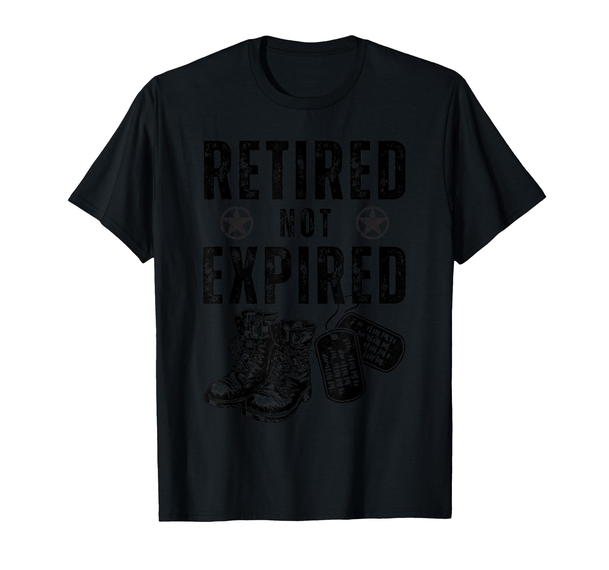 Military Retired Not Expired Veteran Combat Boots Dog Tags T-Shirt