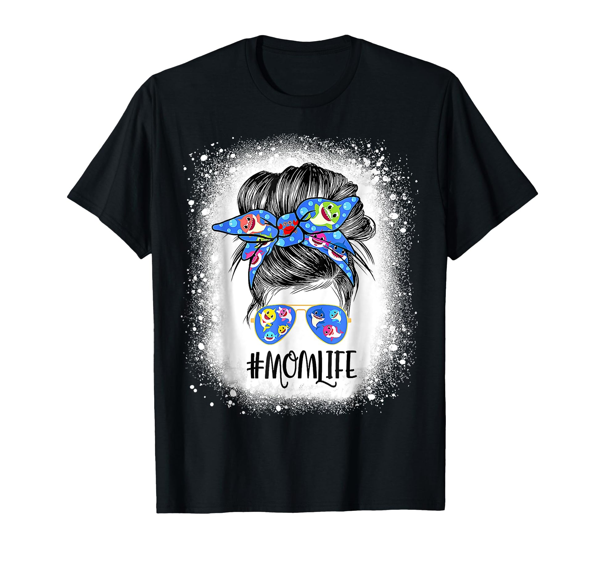 Mom Life Messy Bun Bleached Shark Mommy Mother's Day T-Shirt