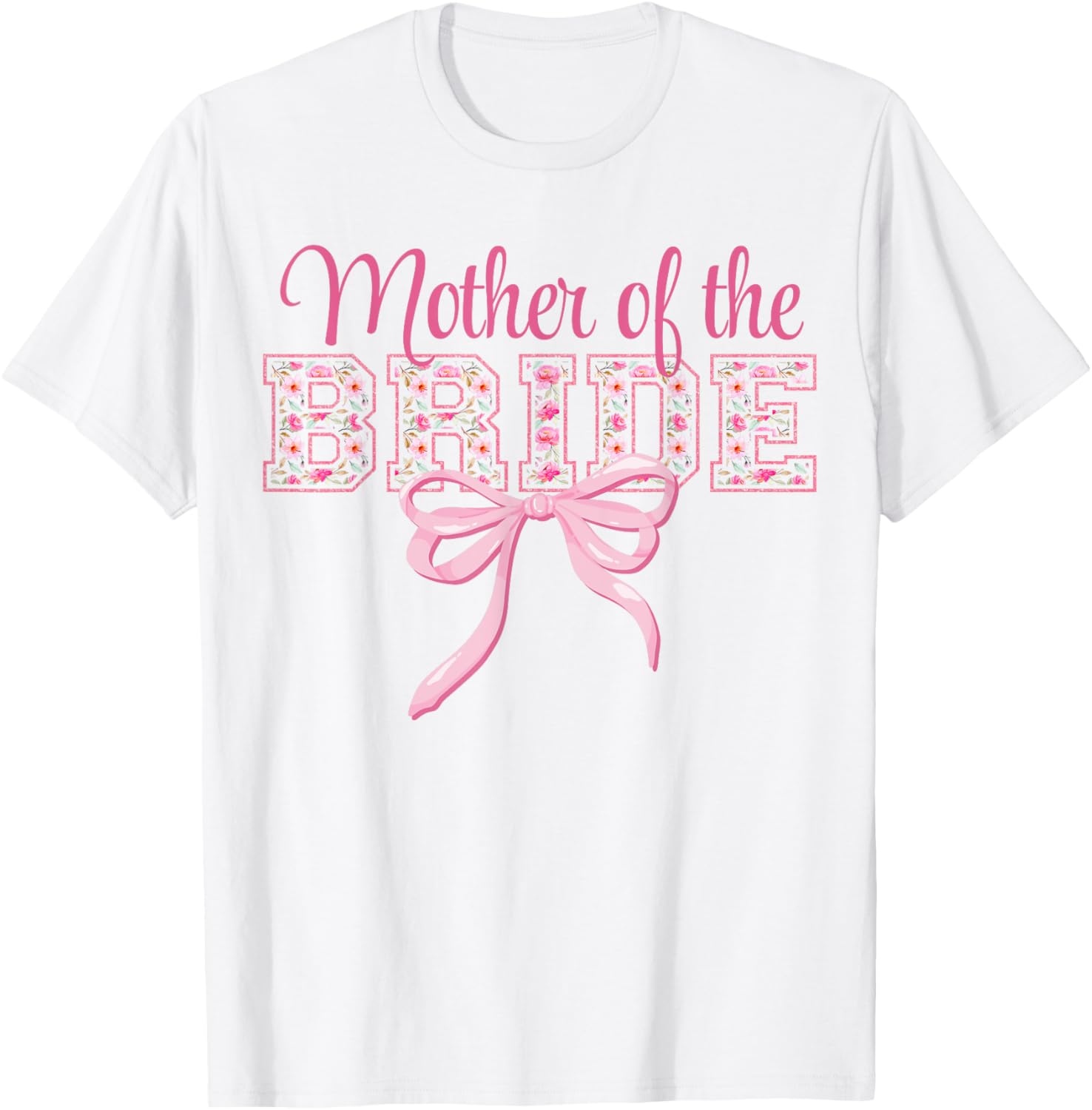 Mother Of The Bride Pink Bow Coquette Floral Matching Bridal T-Shirt