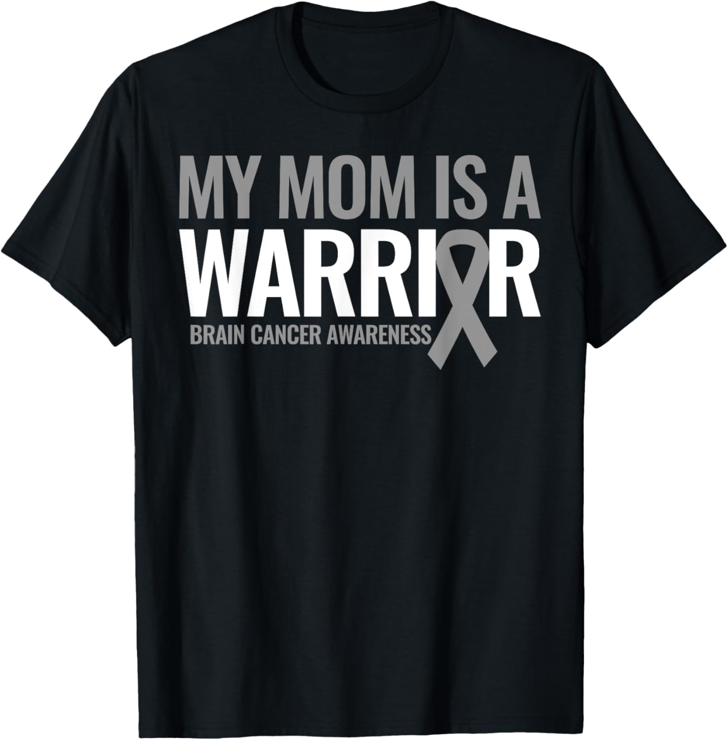 My Mom is a Warrior Brain Cancer Tumor Awareness Gray Ribbon T-Shirt