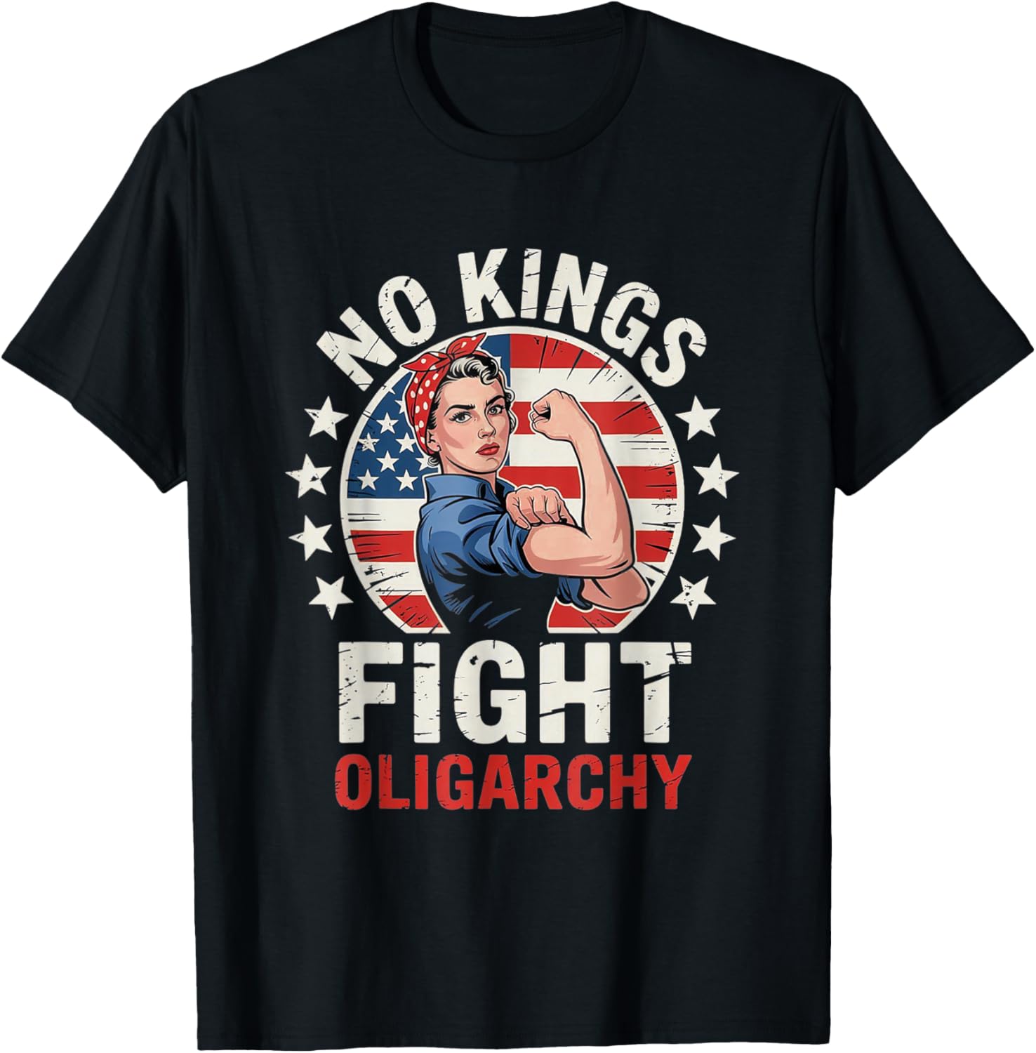 No Kings Fight Oligarchy Vintage Woman's Girl America Flag T-Shirt