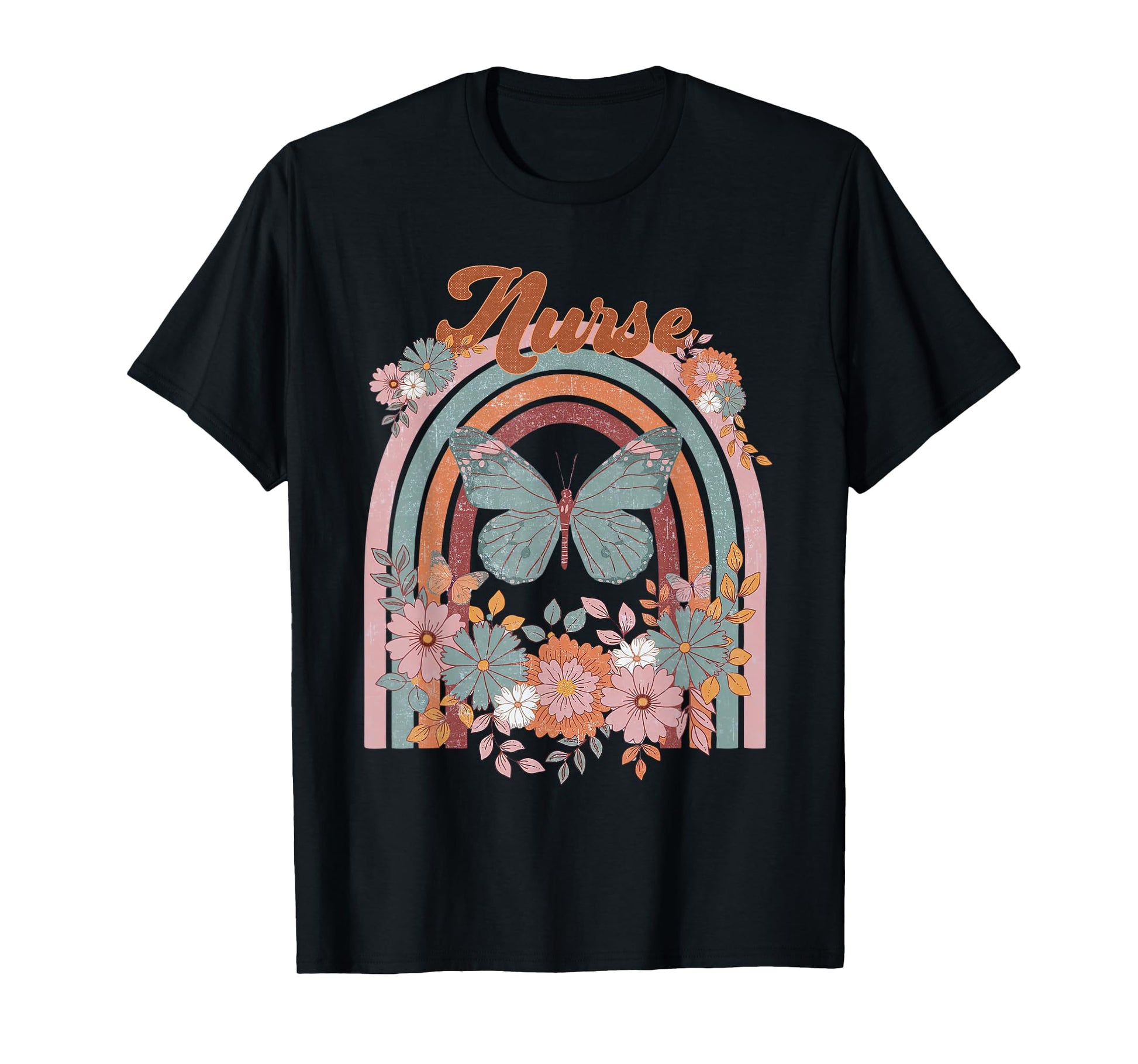 Nurse Vintage Floral Boho Hippie Rainbow Butterfly Men Women T-Shirt