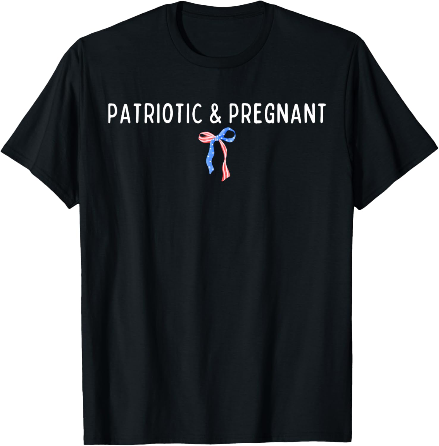 Patriotic And Pregnant 4th Of July.Coquette Bow Pregnancy T-Shirt