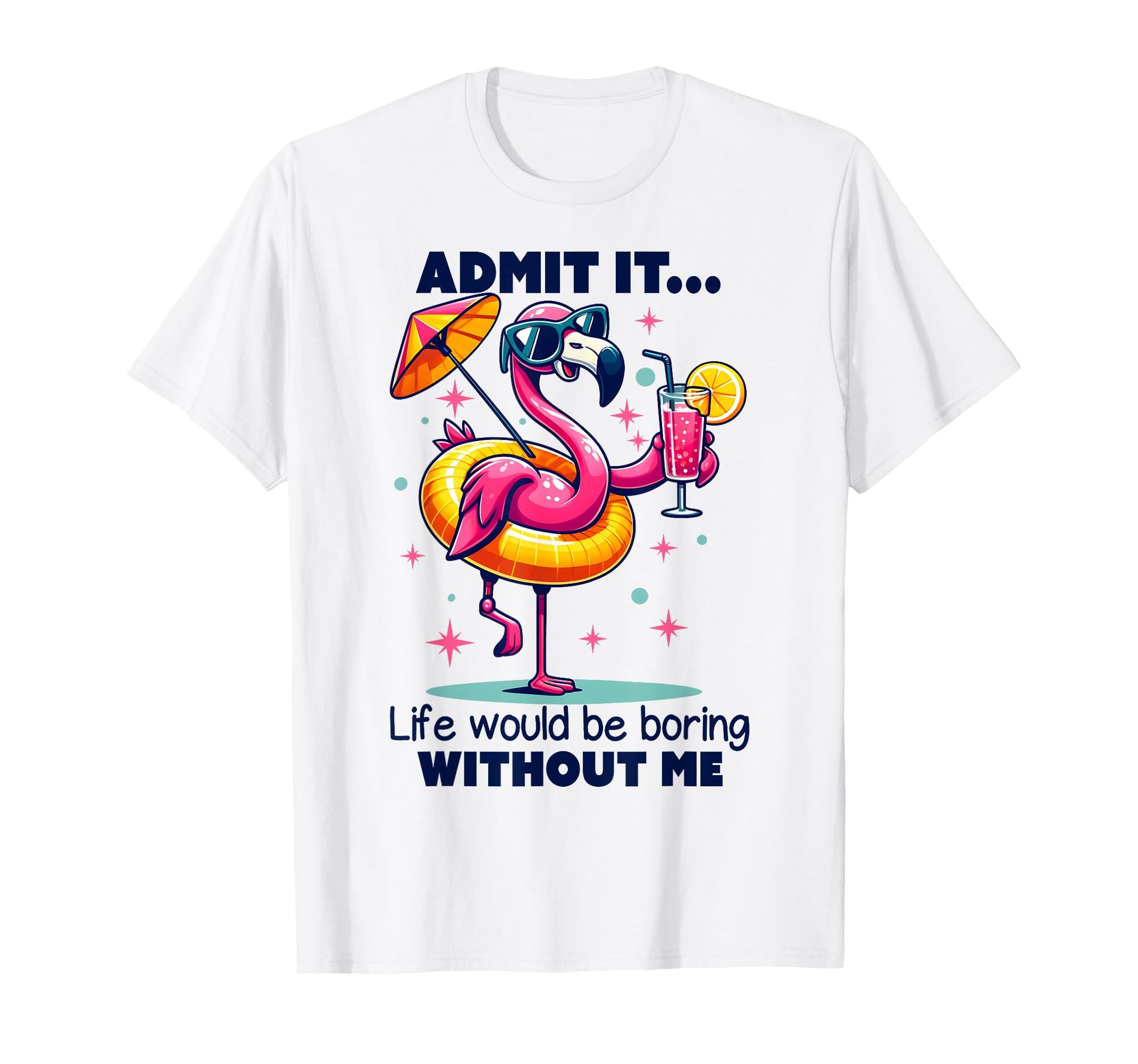 Pink Flamingo Drinking Cocktails Summer Vacation Beach Funny T-Shirt