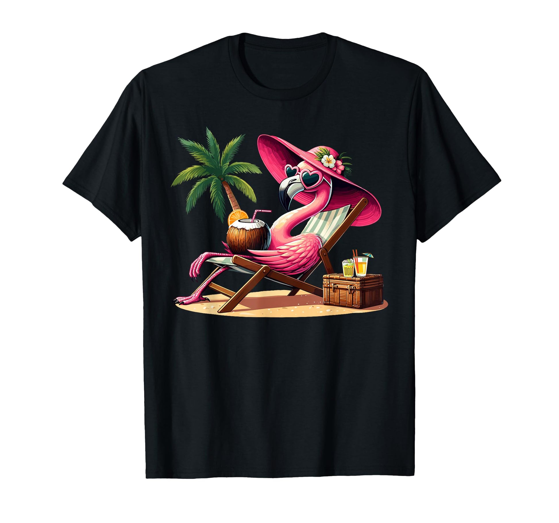 Pink Flamingo Summer Vibes Beach Palm Tree Summer Vacation T-Shirt