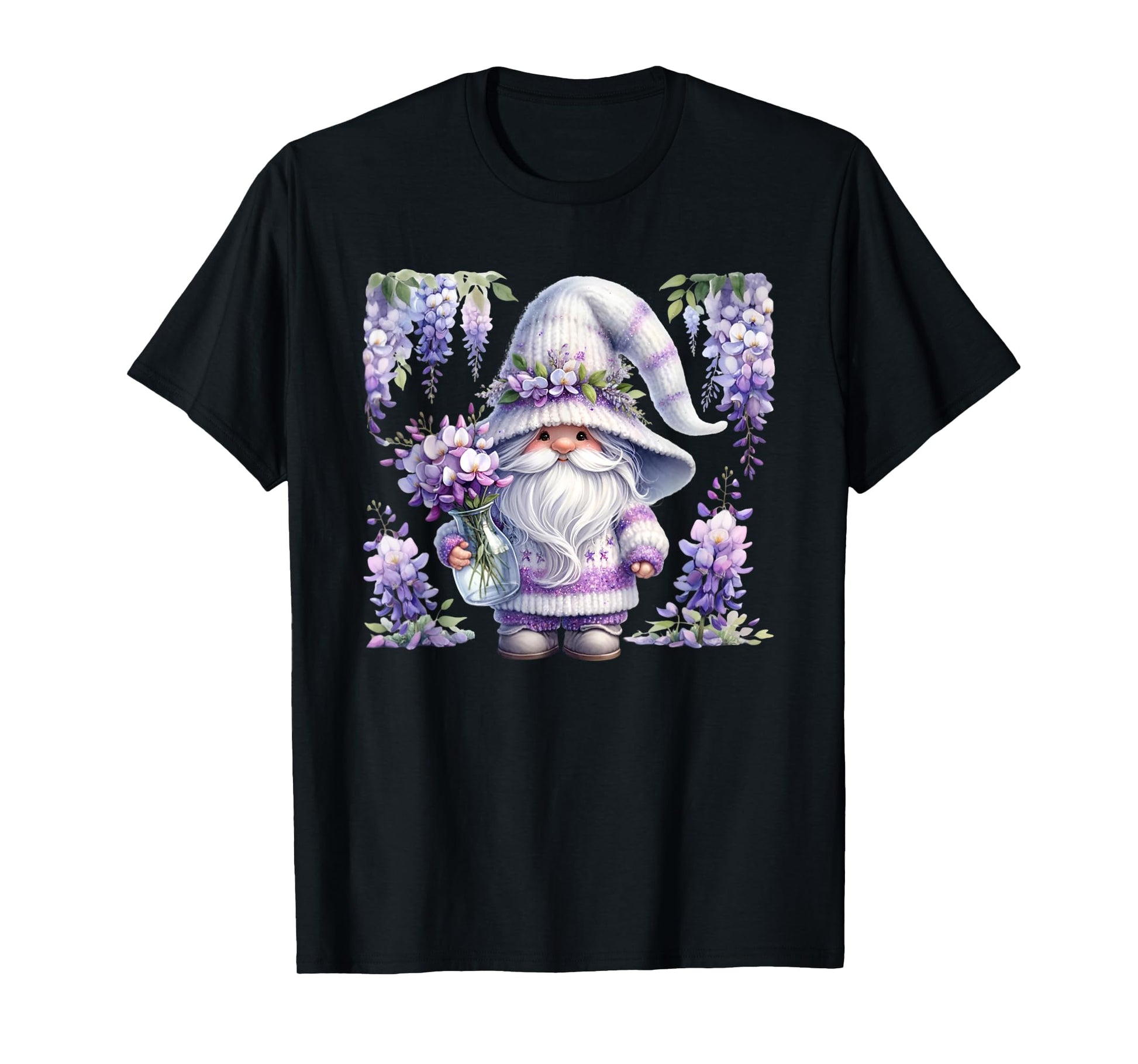 Purple Wisteria Flowers For Mom Cute Gardening Gnome Floral T-Shirt