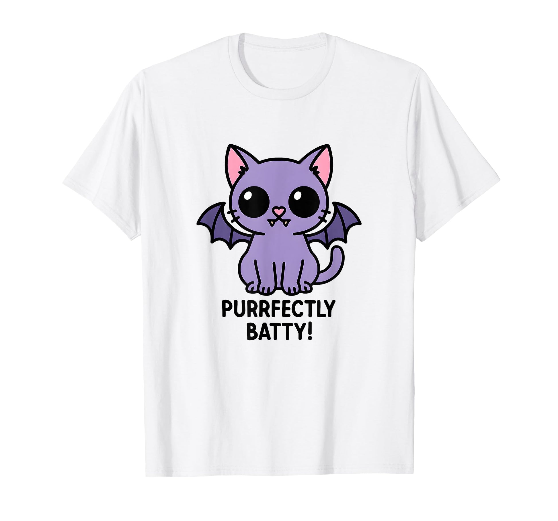 Purrfectly Batty Purple Cat Bat Funny Cute Halloween T-Shirt