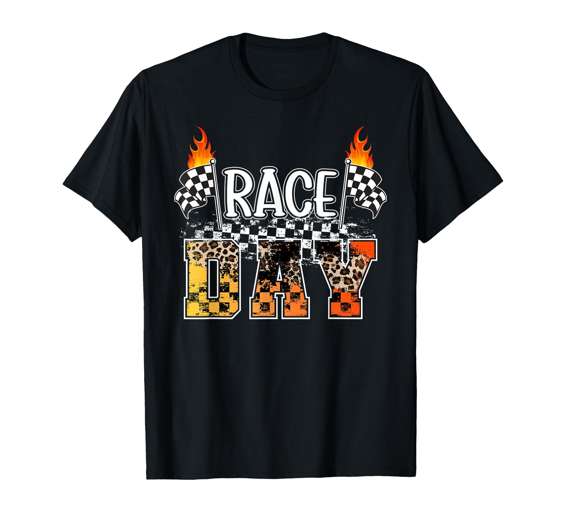 Race Day Leopard Race Days Checkered Flag Car Racing Day T-Shirt