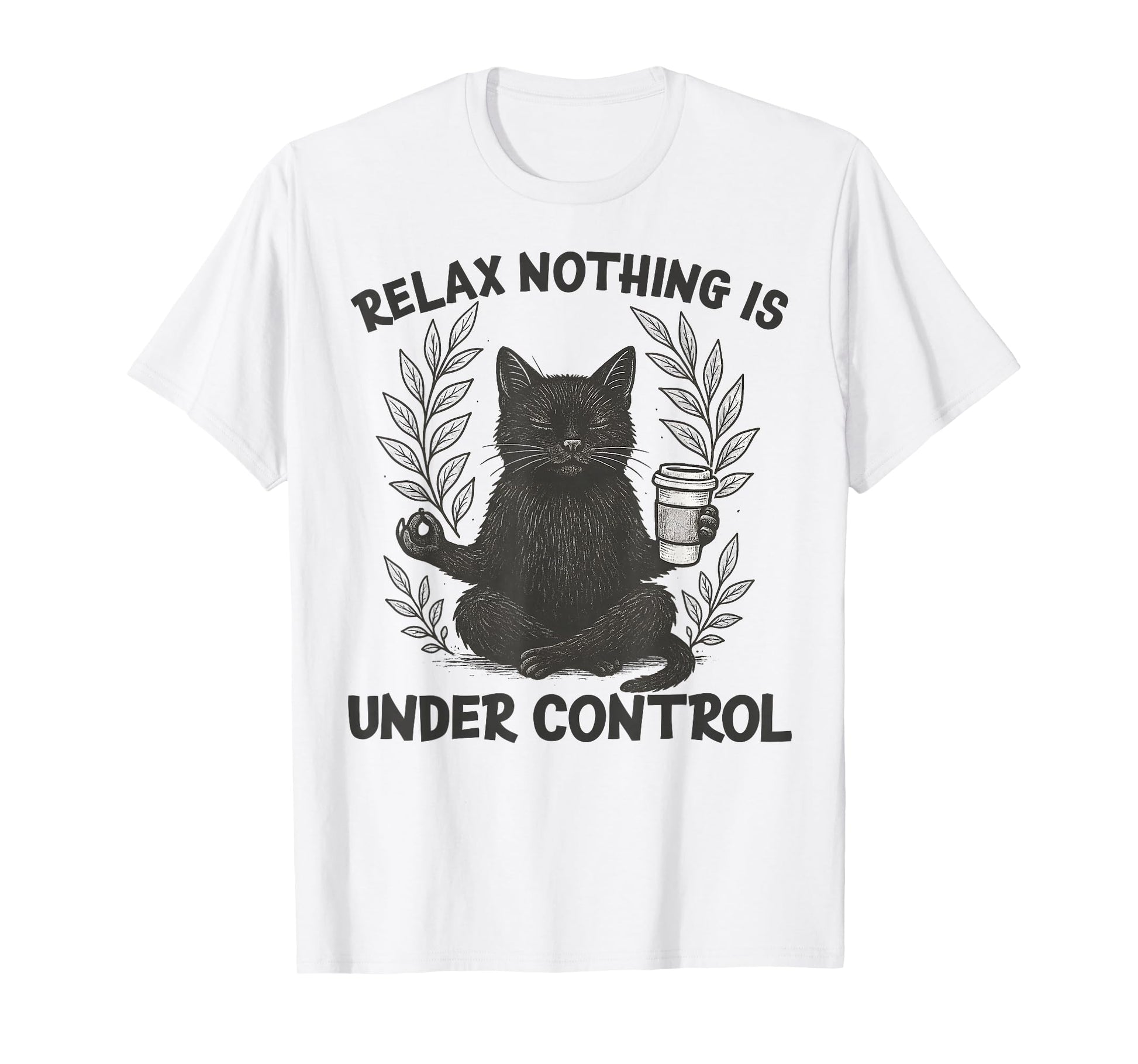 Relax Nothing is Under Control Funny Sarcastic Cat Yoga T-Shirt