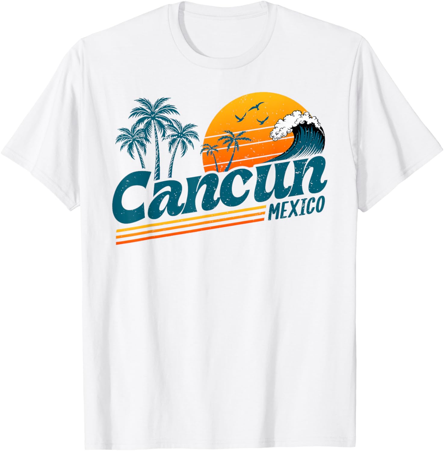 Retro Cancun Mexico Sunset Palm Tree Beach Summer Vacation T-Shirt