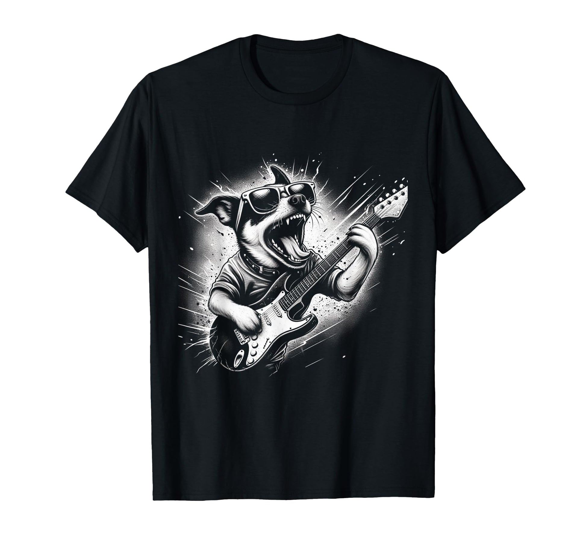 Rock n Roll Dog Cool Dog with Guitar Rock Star Dog Art T-Shirt