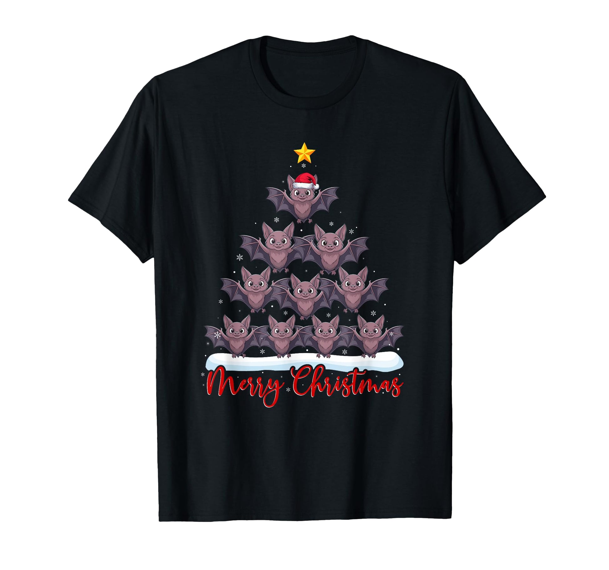 Santa Hat Ugly Xmas Funny Bat Christmas Tree T-Shirt