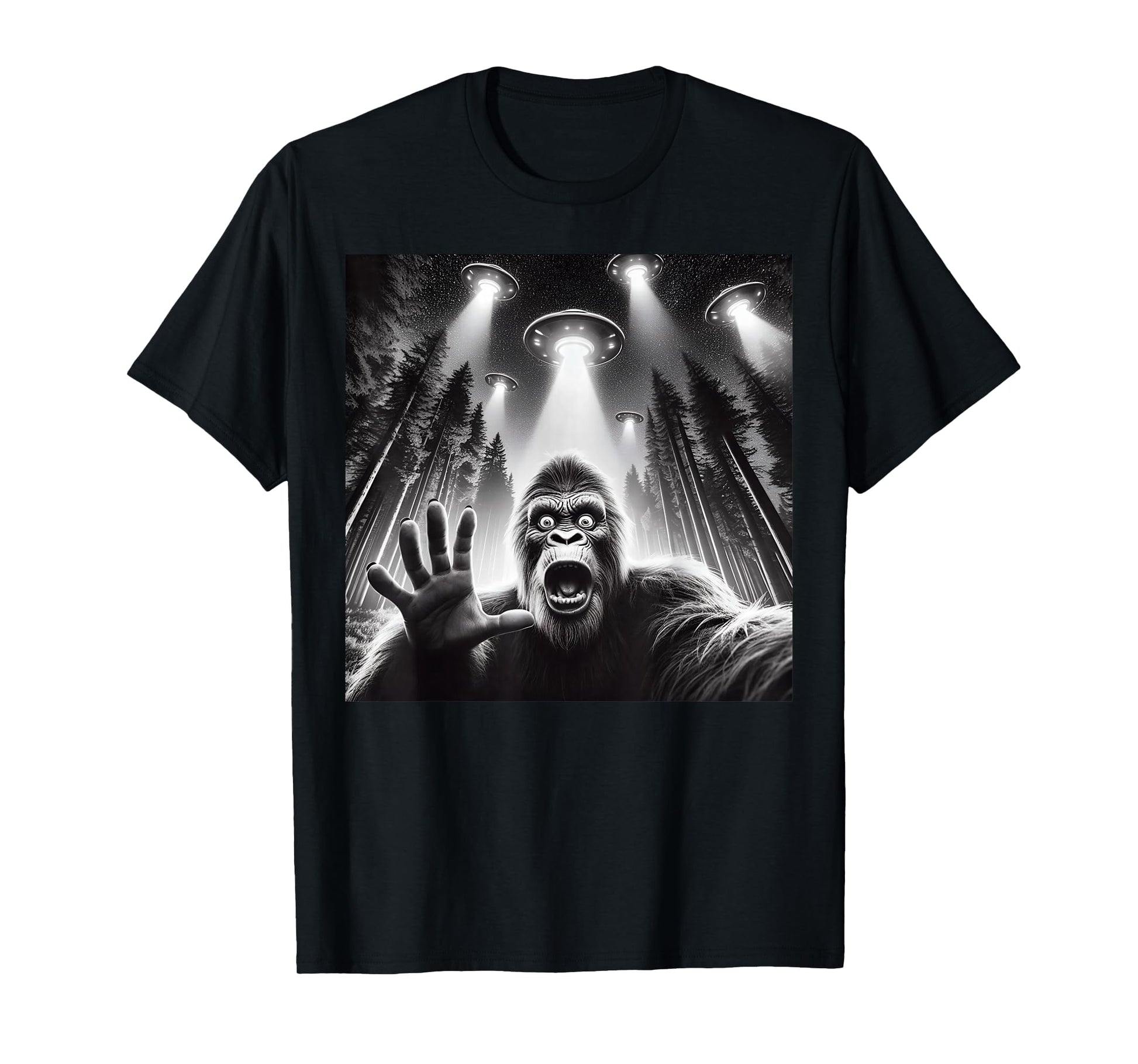 Sasquatch Big Foot Selfie UFOs Alien Funny Bigfoot Selfie T-Shirt