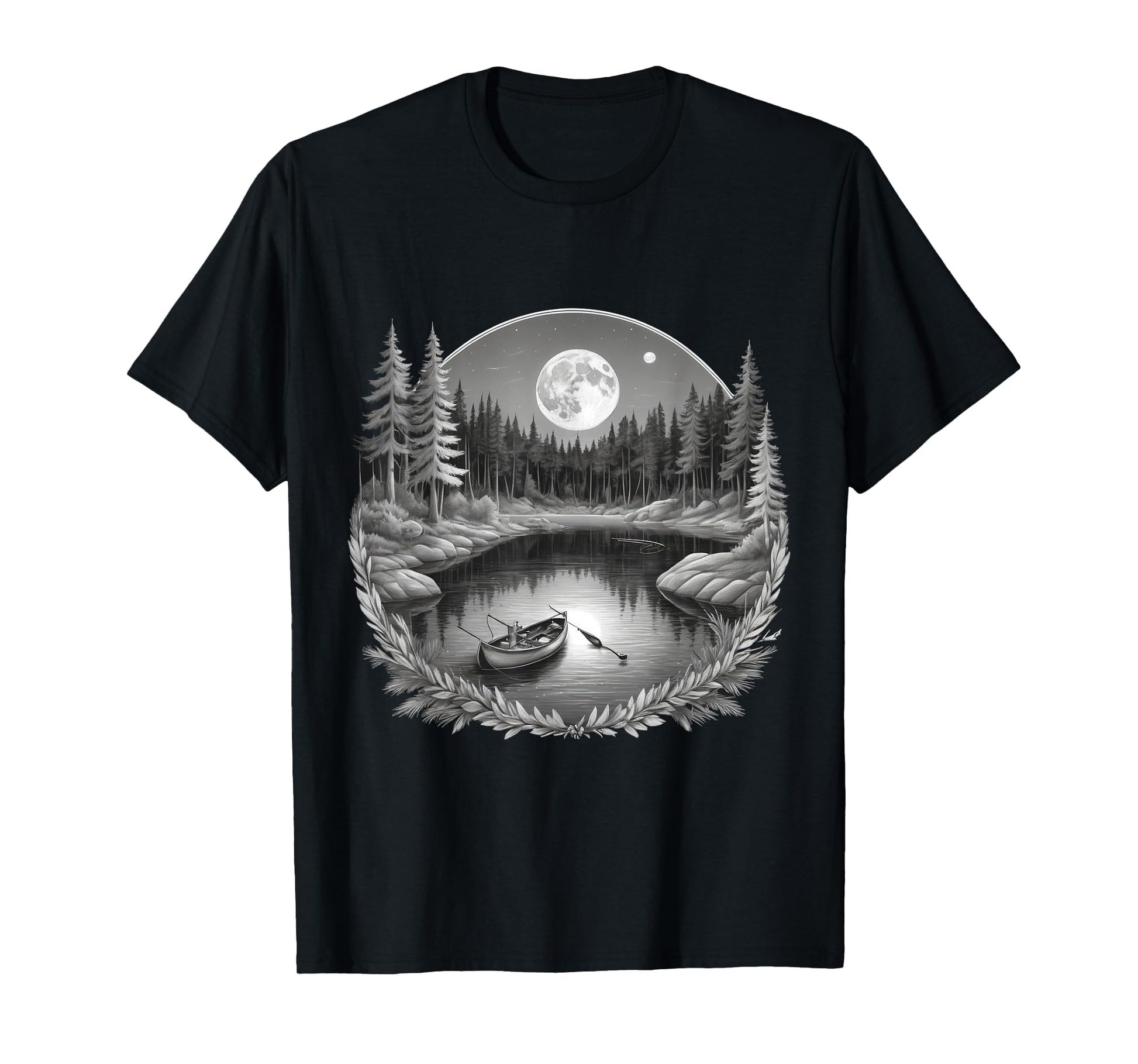 Scenic Moonlight Fishing Retired Anglers with Rowboat Lake T-Shirt