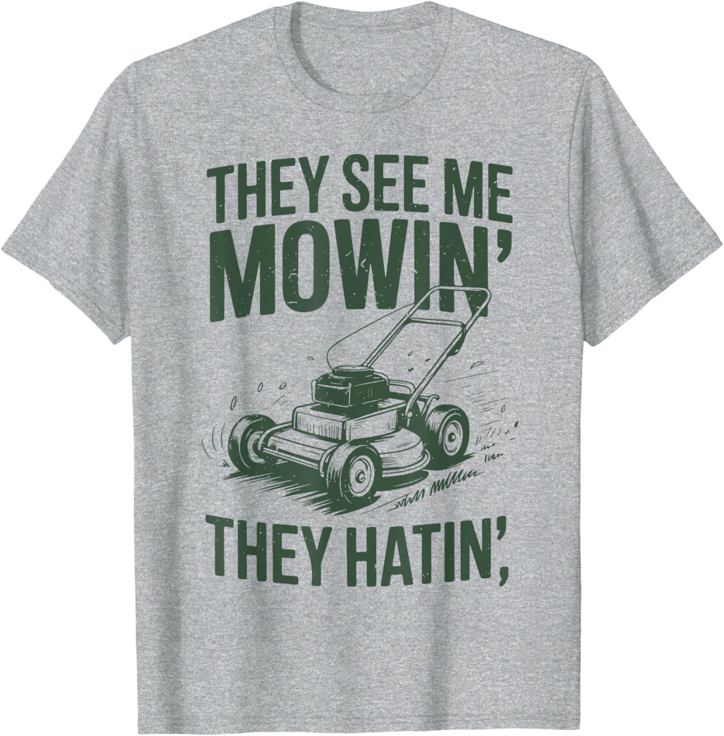 See Me Mowing They Hatin Lawn Father Day Gift Garden Dad T-Shirt