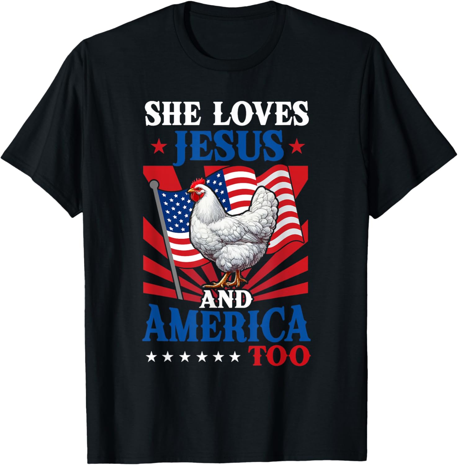 She Loves Jesus And America 4th Of July Us Flag Chicken T-shirt