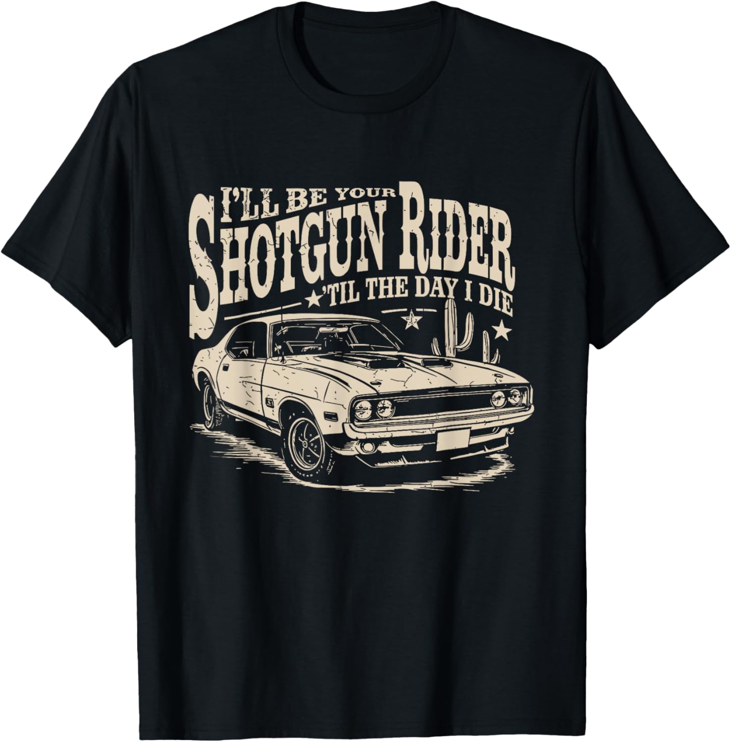 Shotgun Rider Car Vintage Muscle Car Western Love Quote T-Shirt