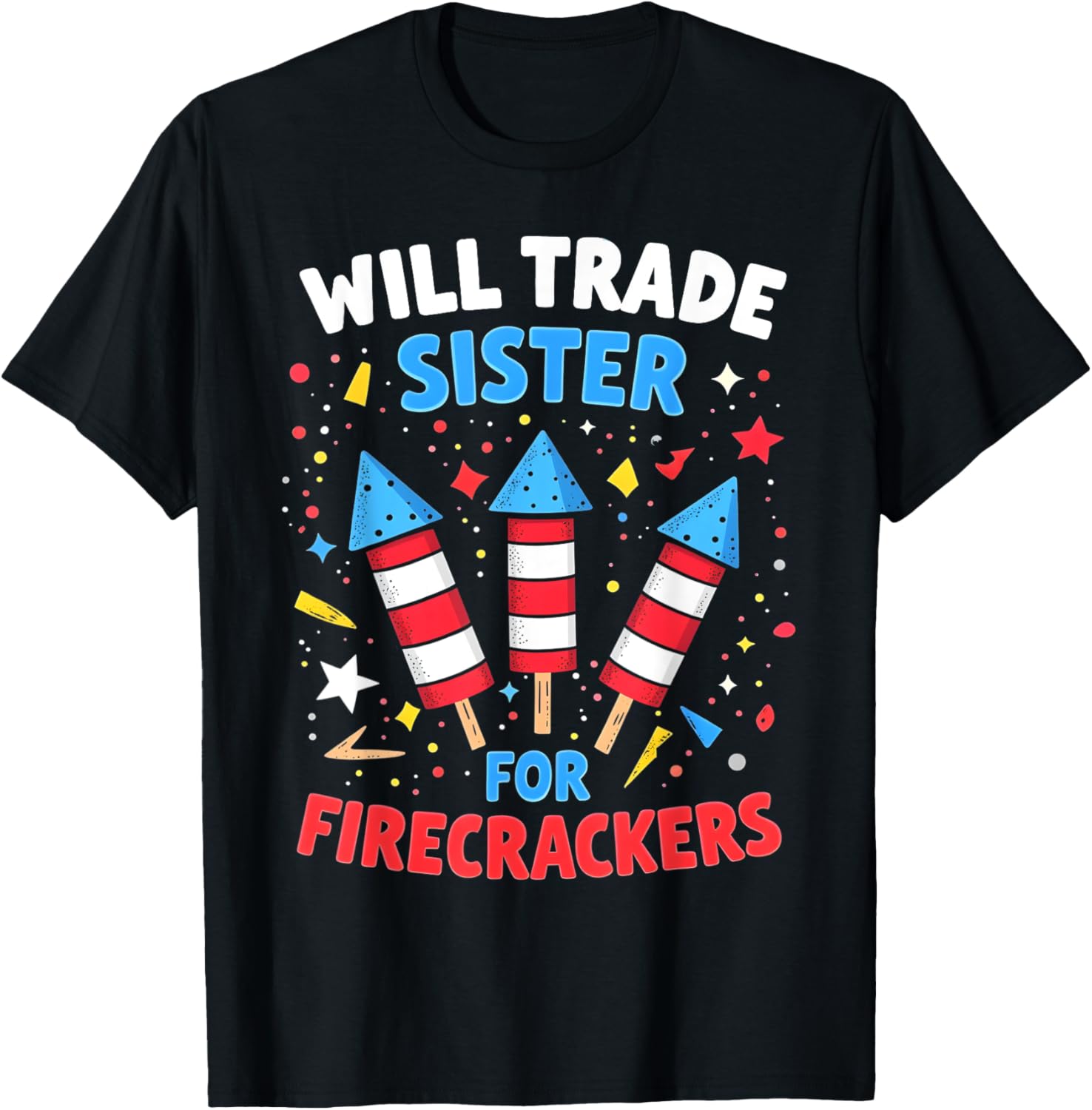 Will Trade Sister For Firecrackers Funny 4th Of July T-Shirt