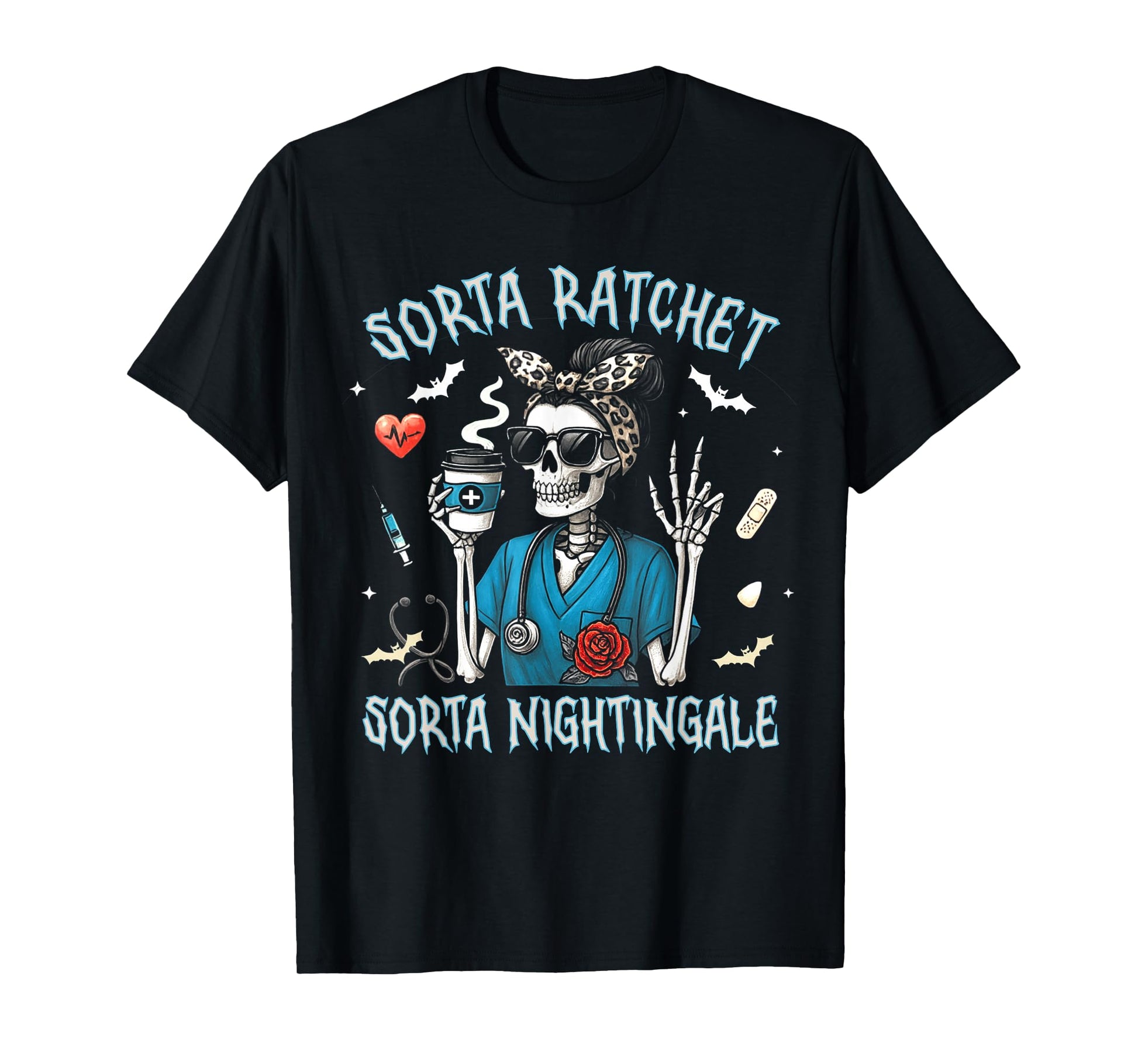 Skeleton Nurse Sorta Ratchet Sorta Nightingale Halloween T-Shirt