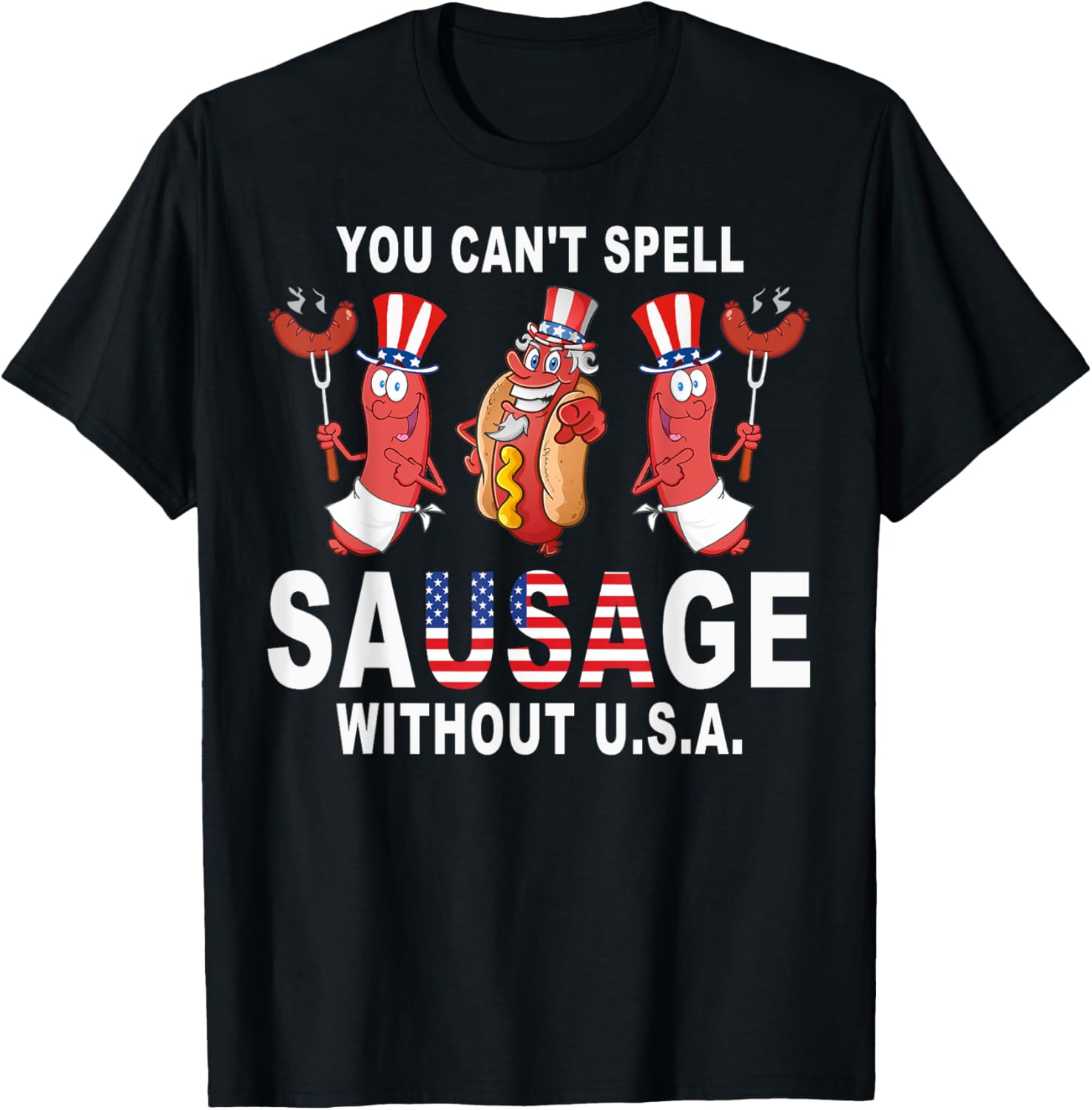 You Cant Spell Sausage Without USA 4th of July American Flag T-Shirt