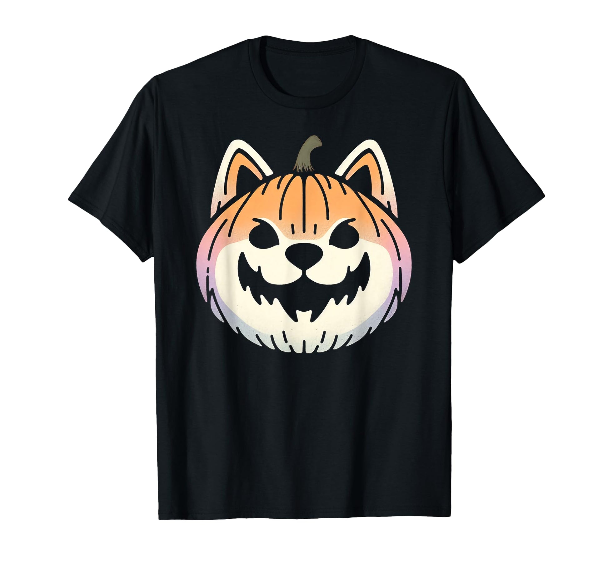 Spooky Shiba Inu Akita Dog Jack O Lantern Halloween Pumpkin T-Shirt