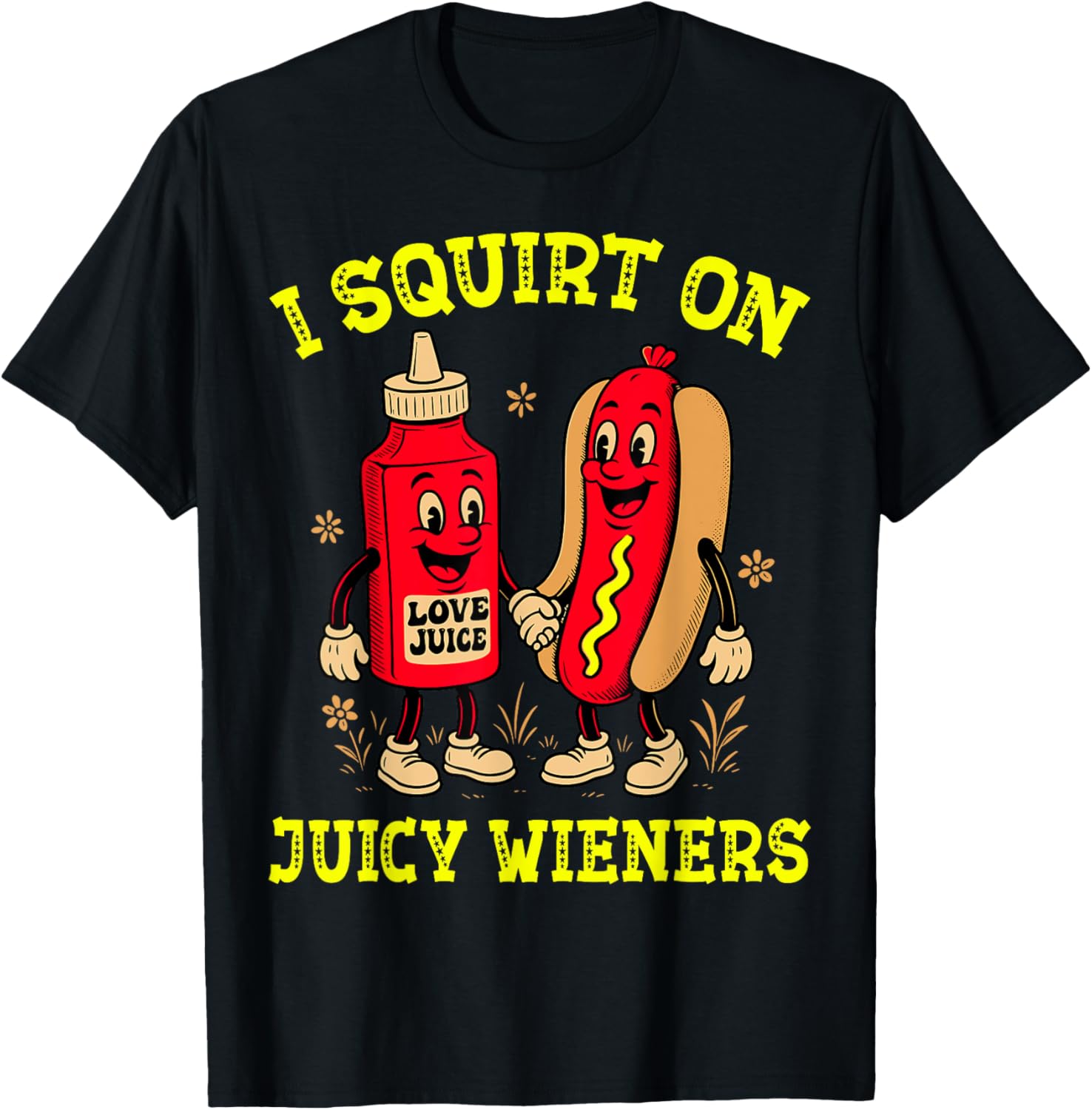 I Squirt On Juicy Wieners Hotdog Inappropriate 4th of July T-Shirt