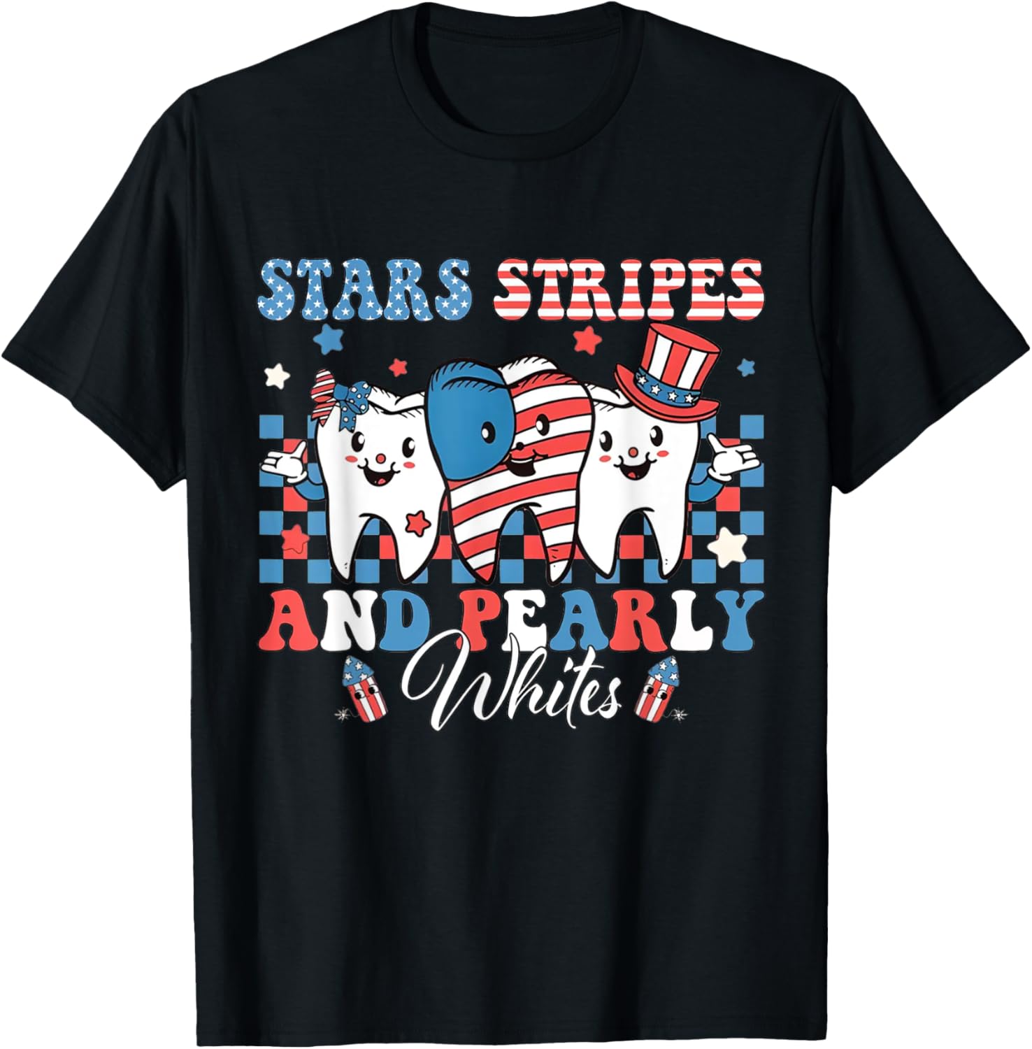 Stars Stripes And Pearly Whites Dental 4th Of July Dentist T-shirt
