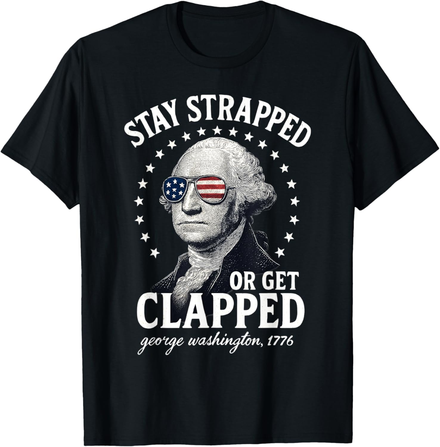 Stay Strapped Or Get Clapped George Washington 4th Of July T-shirt