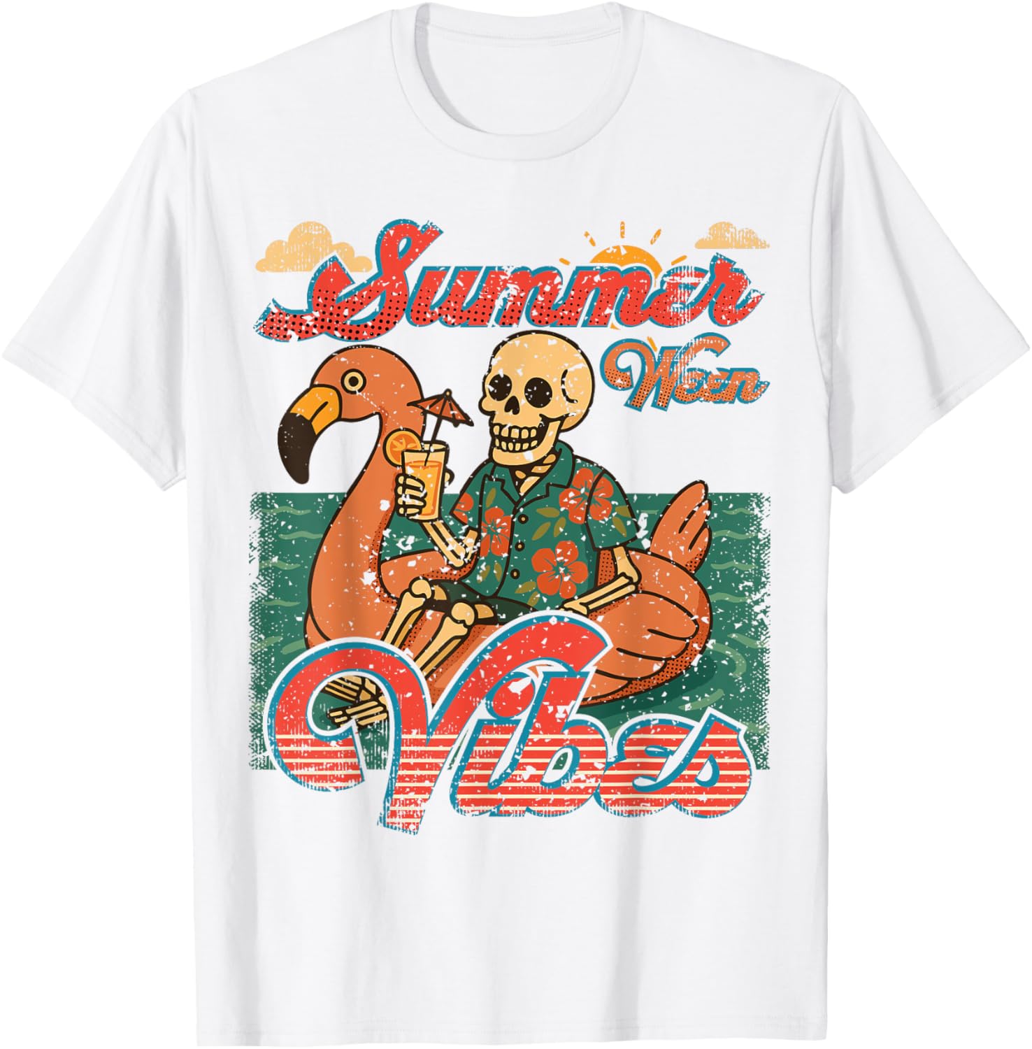Summerween Vibes Skeleton Flamingo Float Summer Halloween T-Shirt