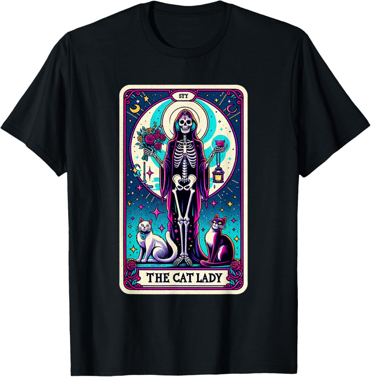 "The Cat Lady" Skeleton Tarot Card T-Shirt