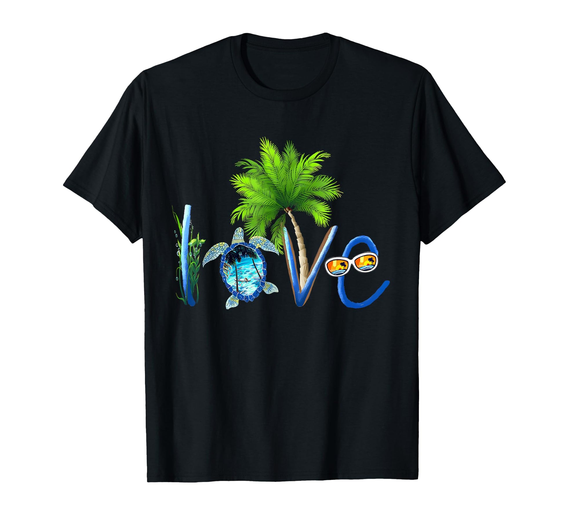 Tropical Beach Love Sea Turtle Palm Tree Summer Vacation T-Shirt