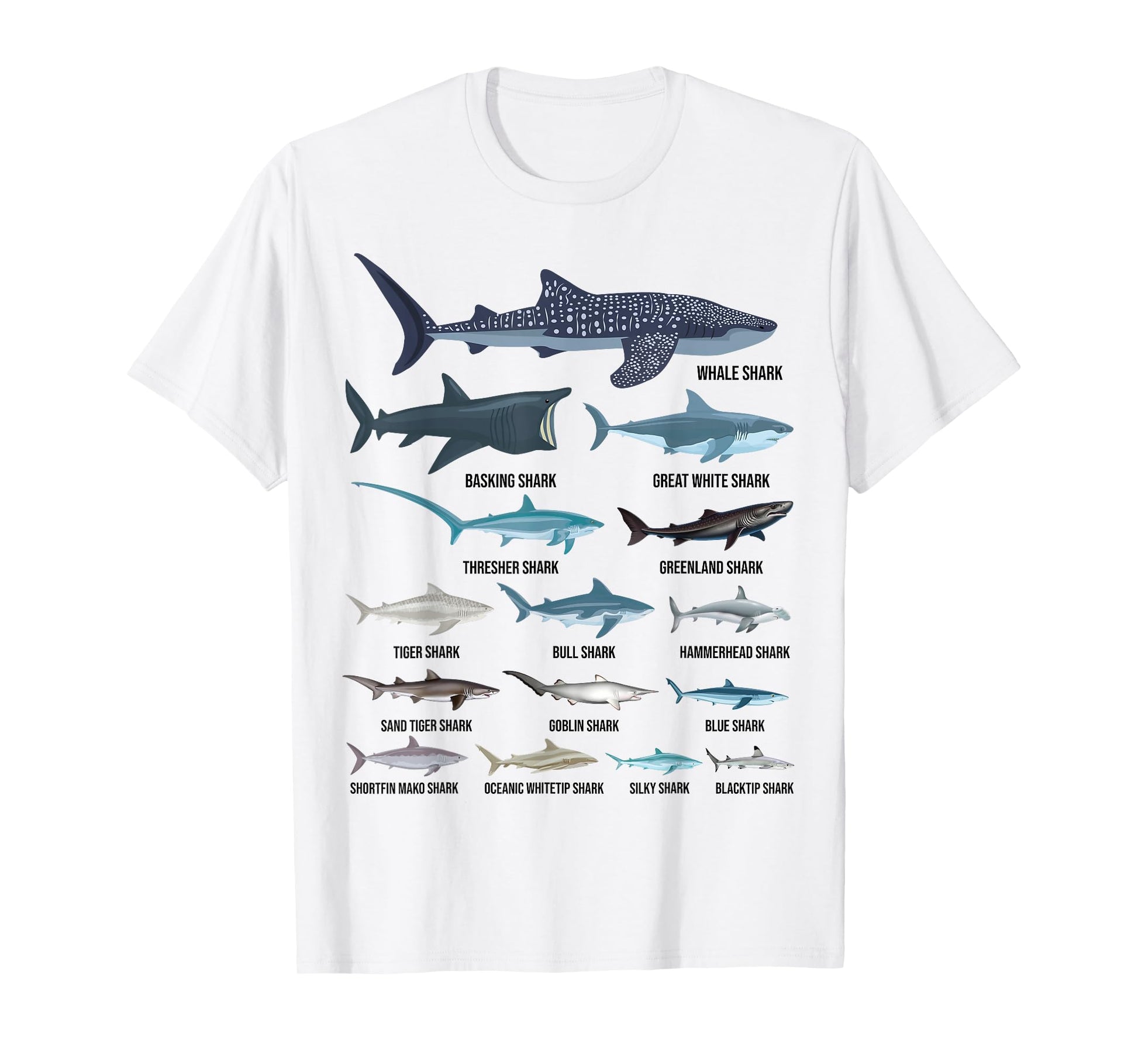 Types of Sharks Shark Species Identification Ocean Lovers T-Shirt