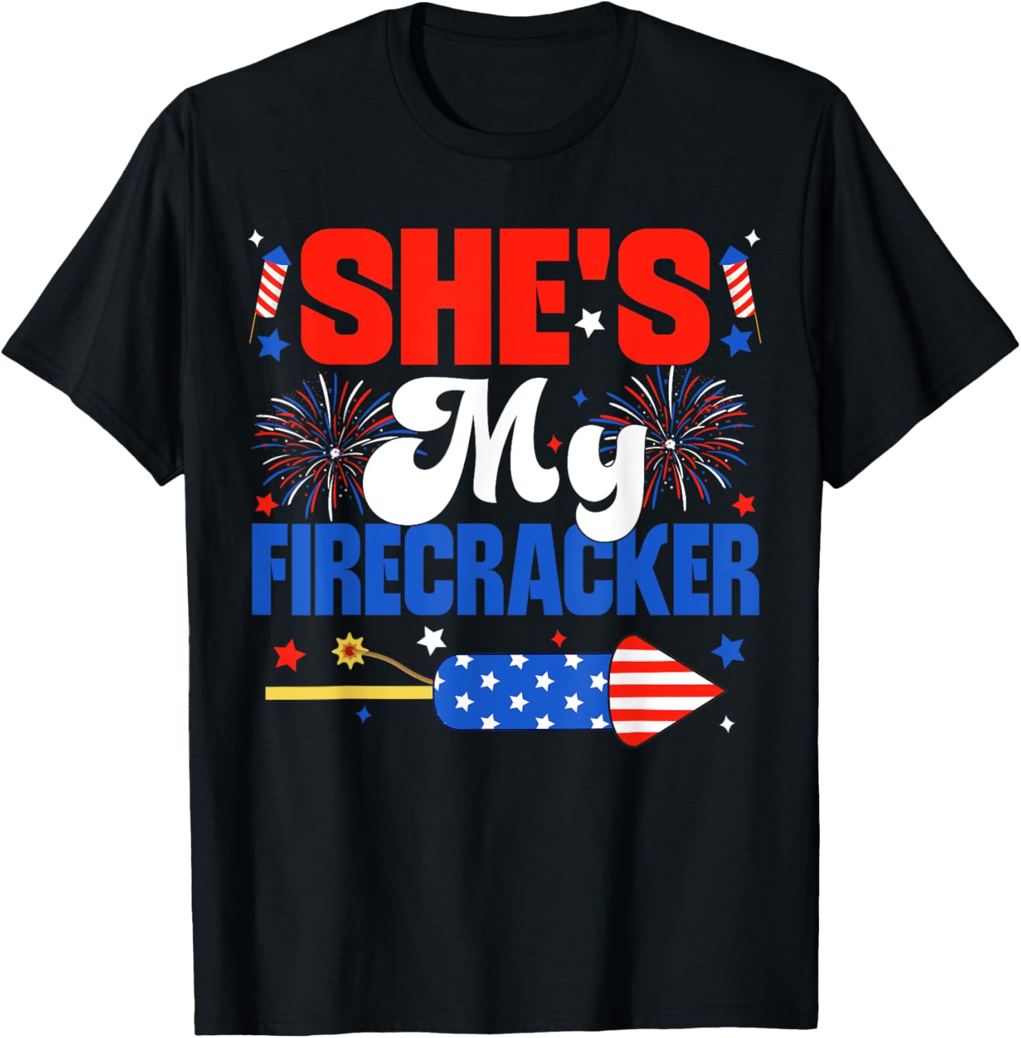 She's My Firecracker USA Couples Matching Couple 4th of July T-Shirt