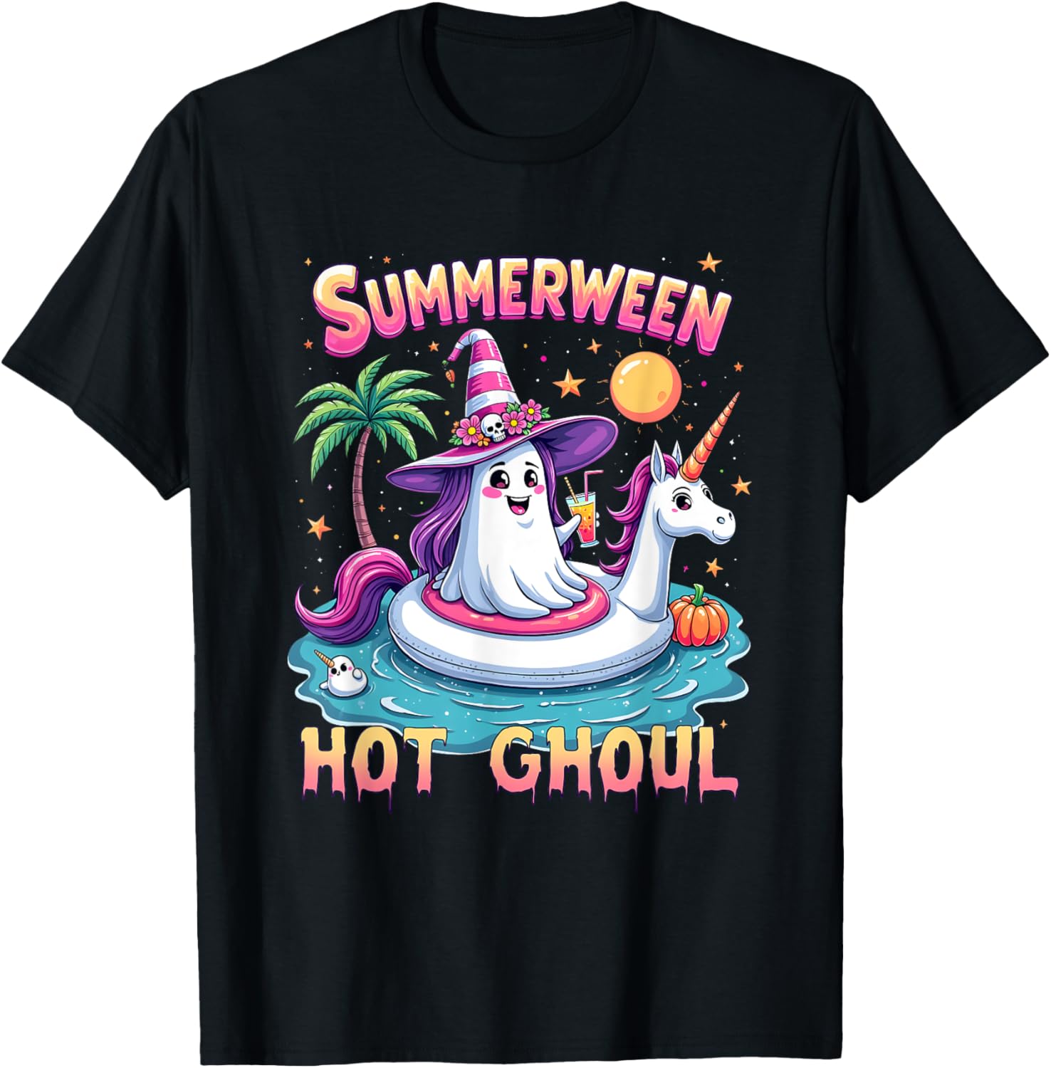 Vacation Halloween Party Group Funny Summerween Witch Vibes T-shirt