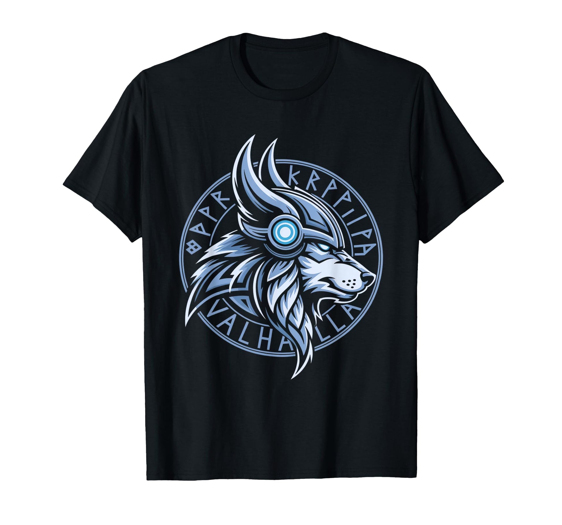 Valhalla Wolf Mask Odin Runes Norse Compass Viking T-Shirt